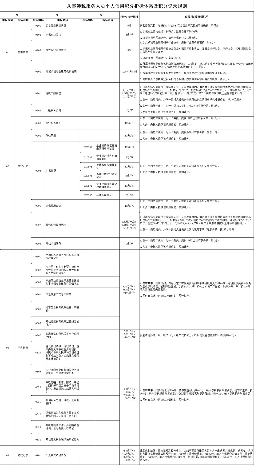 對從事涉稅服務人員的執業信用評價指標及具體的積分規則做了規定。