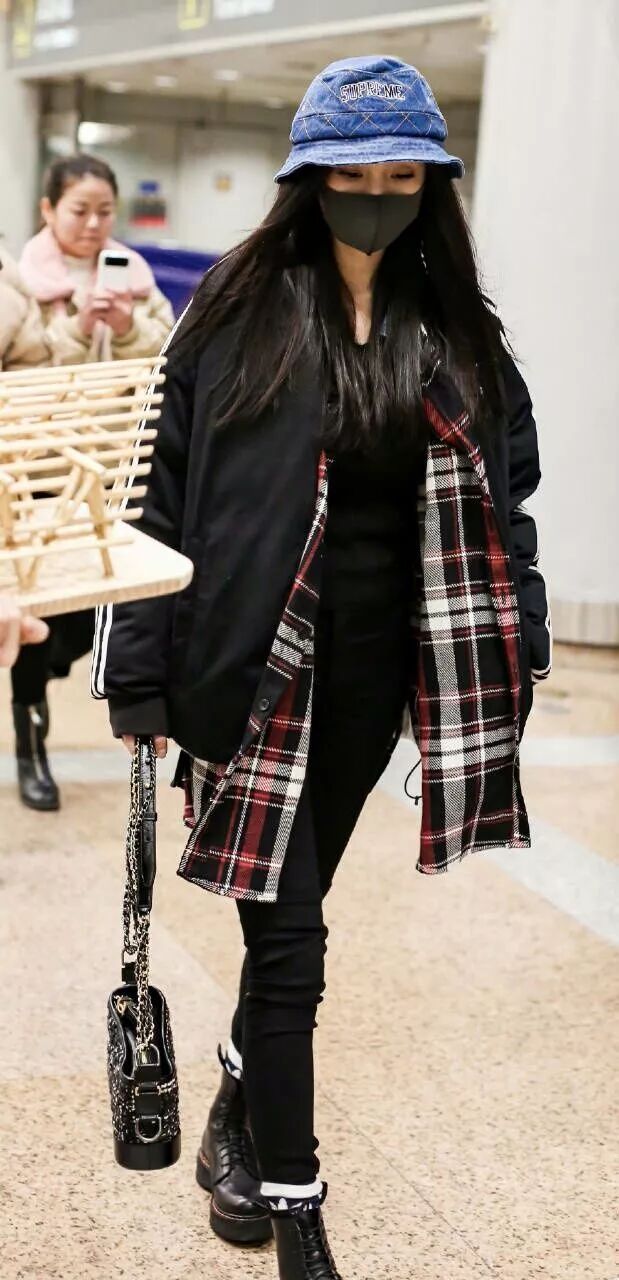 不過現在很少能夠在機場上看到楊冪了,楊冪這次出現在機場穿了一身黑而且裹得特別嚴實,只有里面的格子襯衫有點小花樣