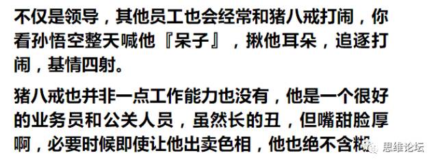 所以,豬八戒有一個很大的作用,就是化解尷尬,充當這個團隊里的潤滑油,以保證團隊正常運轉。