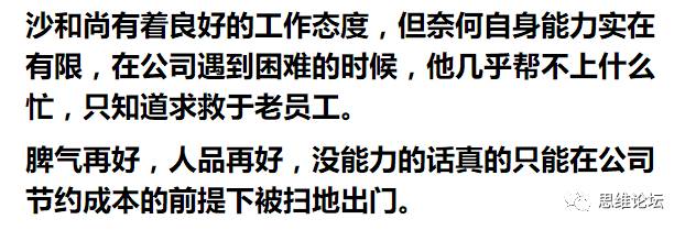 因為廉價勞力力太多,每年那麼多的應聘者,誰都能頂替你的位置,而且對於主管來講,沙和尚的上限就那麼高,已經可以預見到了。