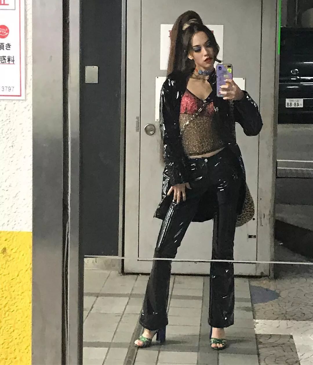 水原希子最近的手機殼用了我上述的 2 種方法:透明殼子里塞進紫色貼紙 ➕ 外殼貼上卡通貼紙。(也可能是買來的