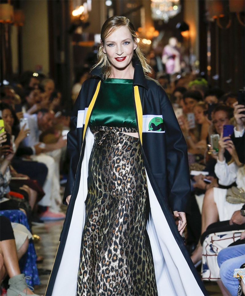 48歲的烏瑪·瑟曼壓軸Miu Miu2019早春度假系列,依然像少女一樣純真無邪。