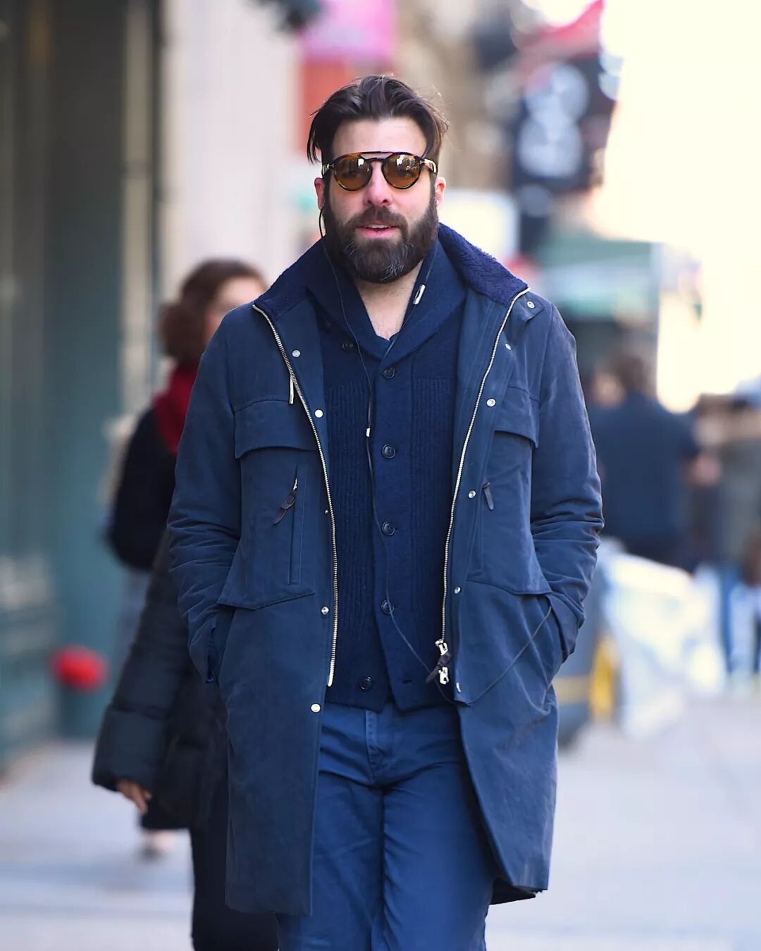 先不說 MA-1 太過爆款,如果只是簡單戴上墨鏡,實在是談不上多麼時髦有質感,搞不好還會讓人覺得你在東施效顰,Low 感頓顯,畢竟不是每個人都是阿湯哥。相比之下,M65 這些稍微罕見又不失經典的軍裝夾克或者是派克大衣,會更有別致的新鮮感。