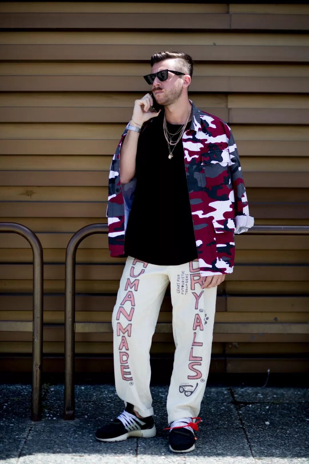 需要注意的是,如果是迷彩款的軍裝夾克或者大衣,那麼下半身最好就穿得簡潔一點。這樣的話,層次才會一目了然。