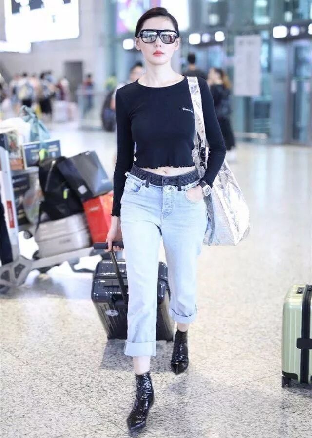 日常私服水平也是一級棒,黑色露臍裝個性卻不張揚,露出小蠻腰的同時也起到很棒的顯瘦顯高效果,搭配上牛仔褲和及踝靴很時髦前衛。