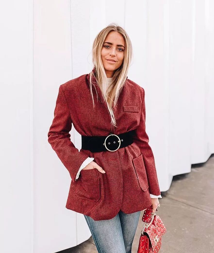 中性單品本就隱蓋了80%的女性特點,加一條腰帶不僅可以優化一下比例,也能凸顯出腰線,拉回幾分女性的曲線魅力。