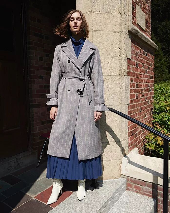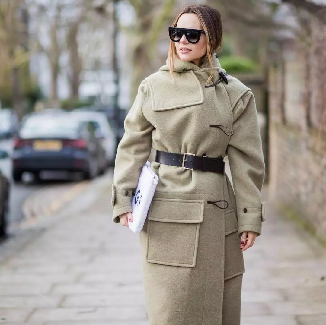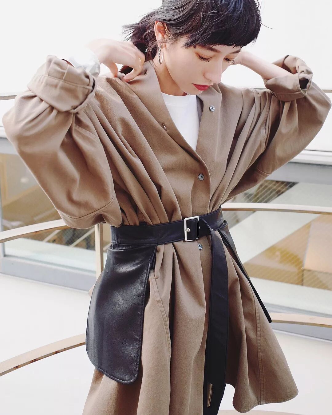 呢大衣的特質是更偏向嚴肅正經通勤,加上皮質的腰帶會多一些休閒的屬性。也可以把一件寬大的大衣變成一件高腰連衣裙