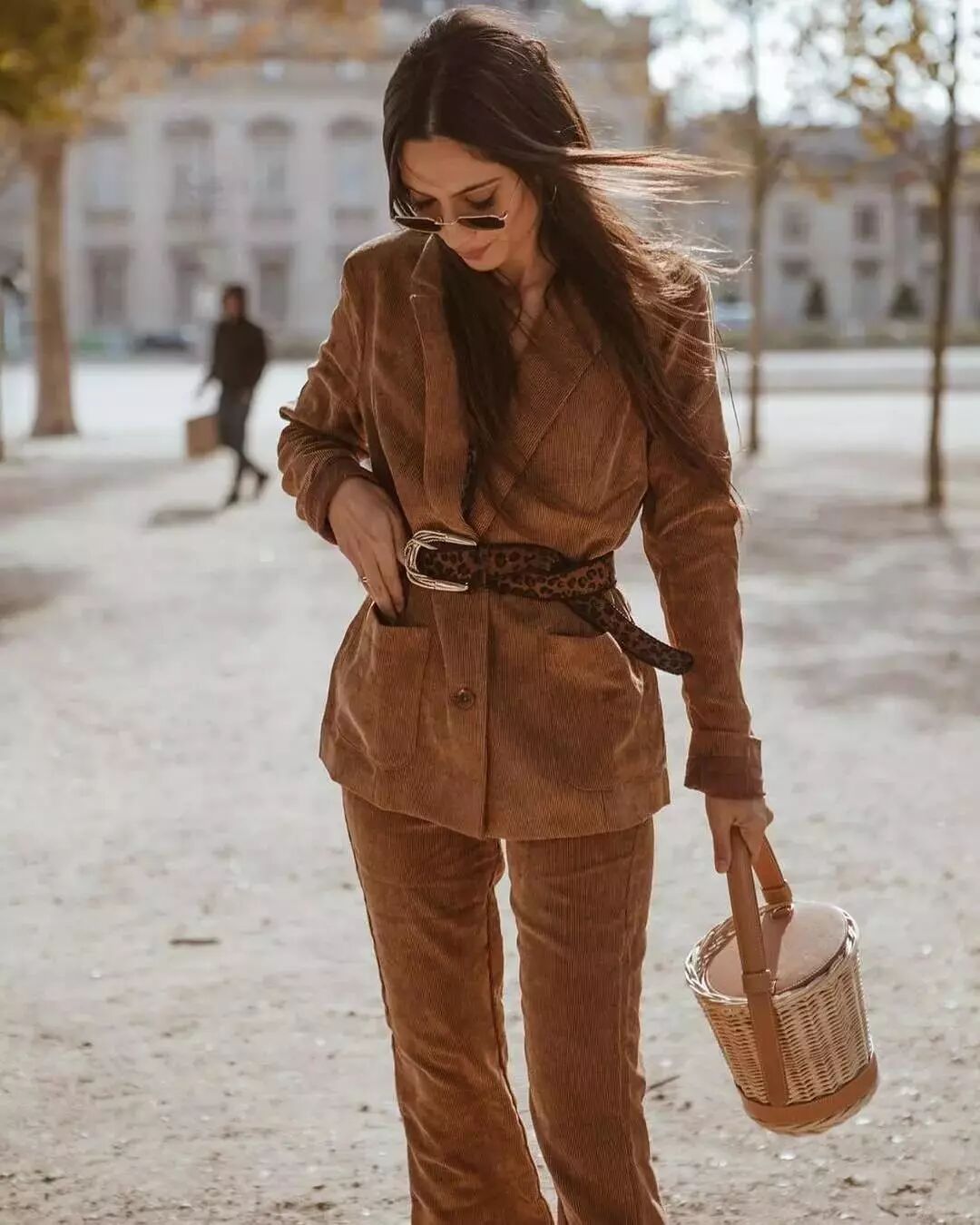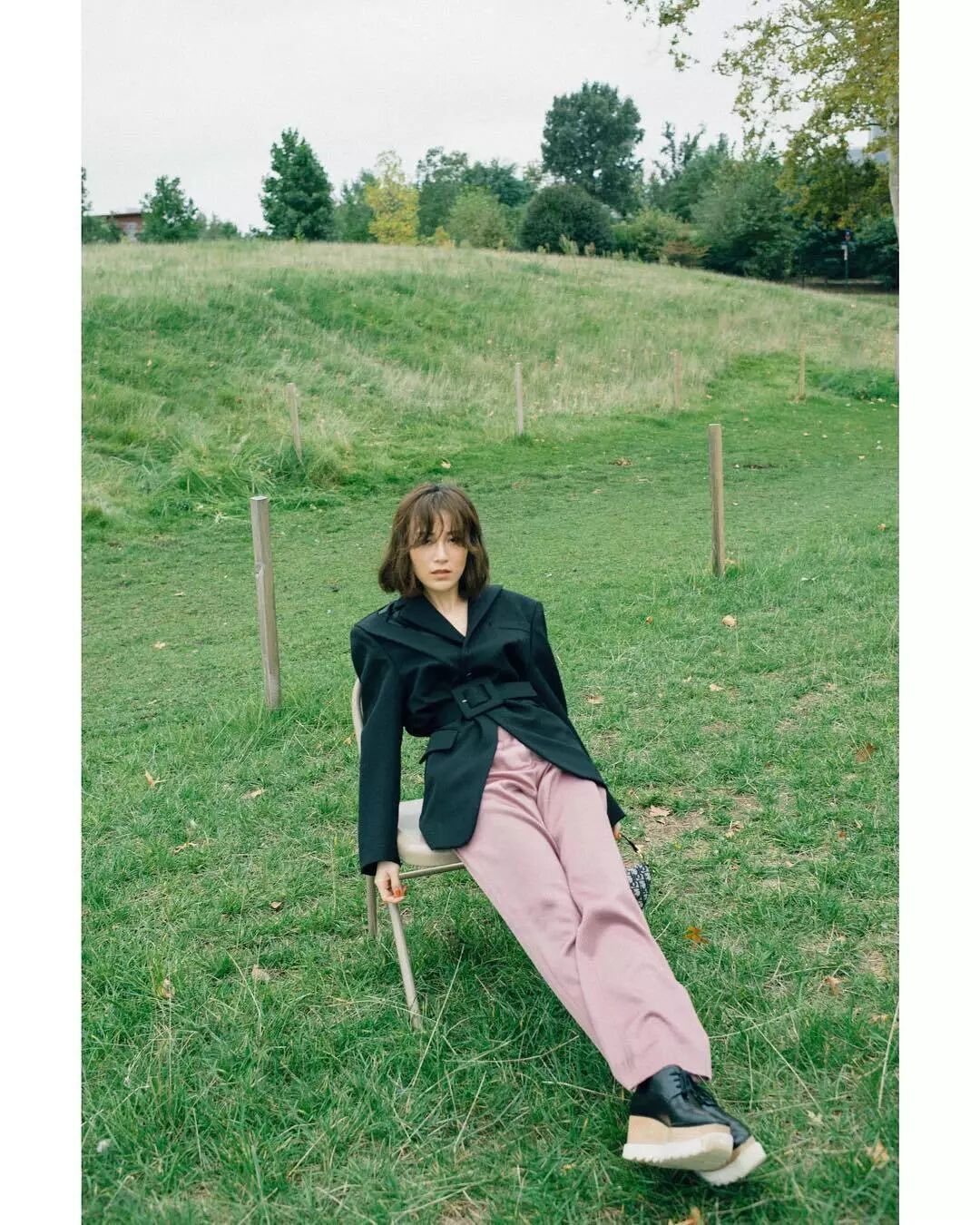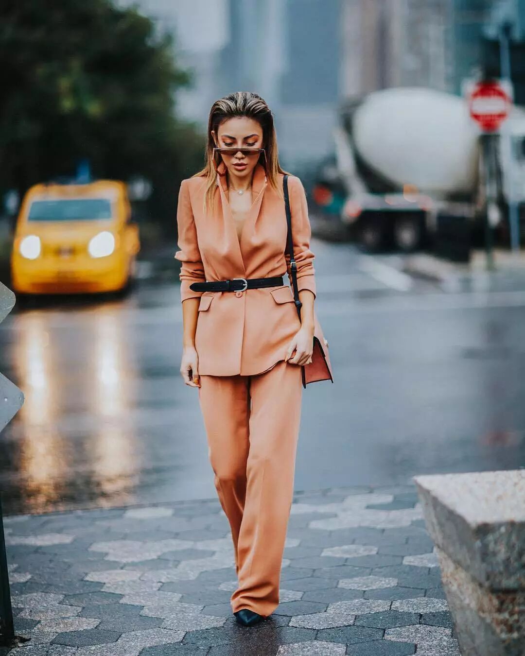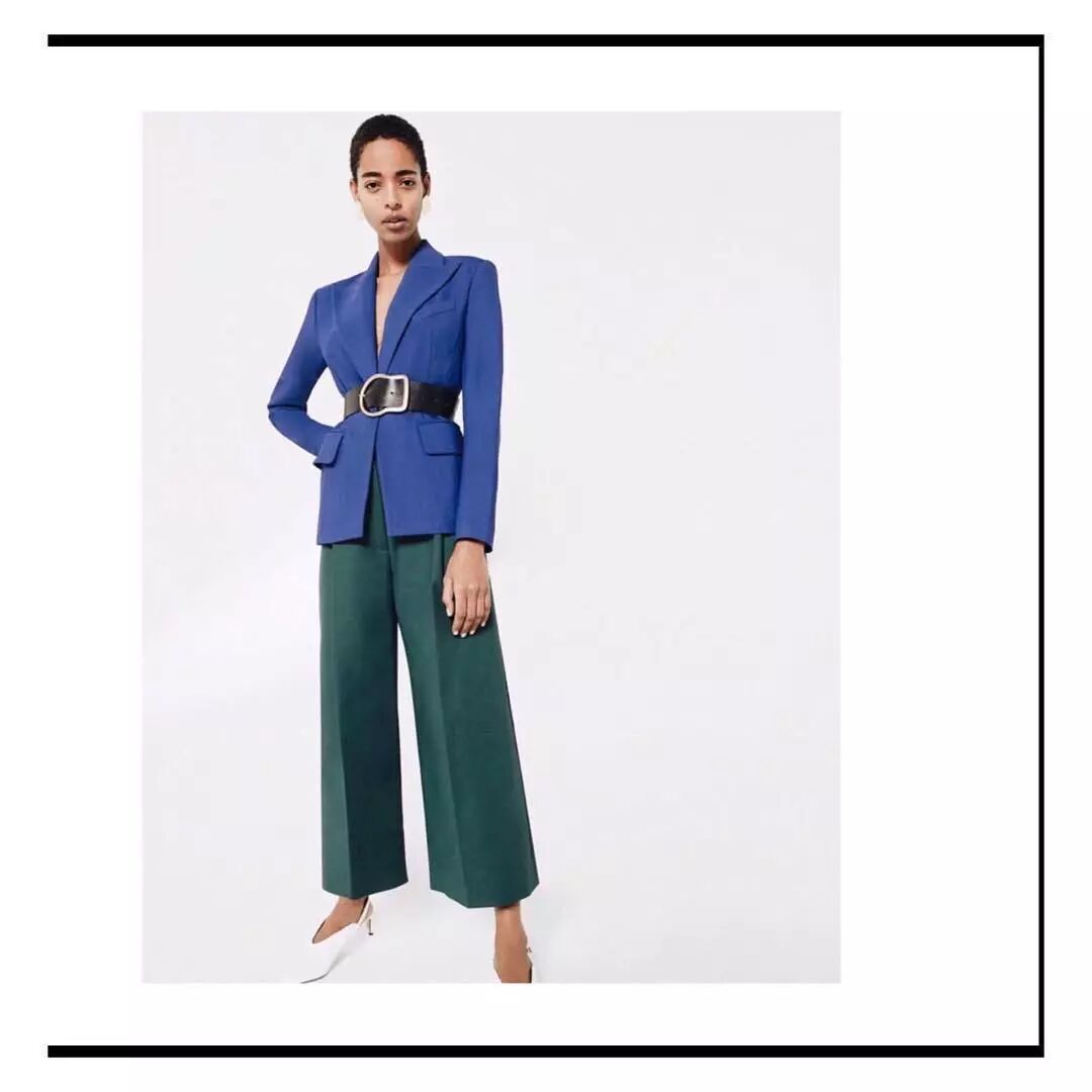 成套的西服第一視覺很難找到一個分割點,高挑的美眉沒有問題,是帥氣利落的,但身材相對嬌小的亞洲人,就會略失氣場,一條腰帶可以讓你更好的hold住它