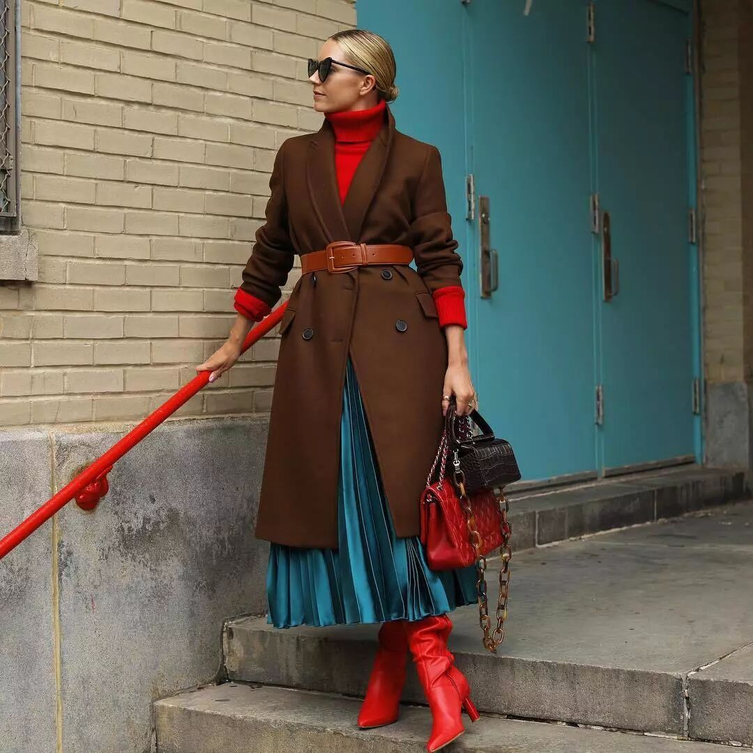 長加長的搭配是優雅的。在長外套里面穿長裙,能夠塑造層層疊進的豐富視覺。