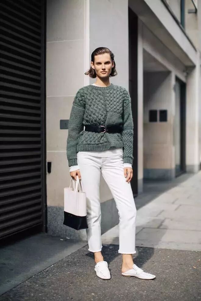 單穿的毛衣,加了腰帶後視覺上給你感覺它是一件小外套