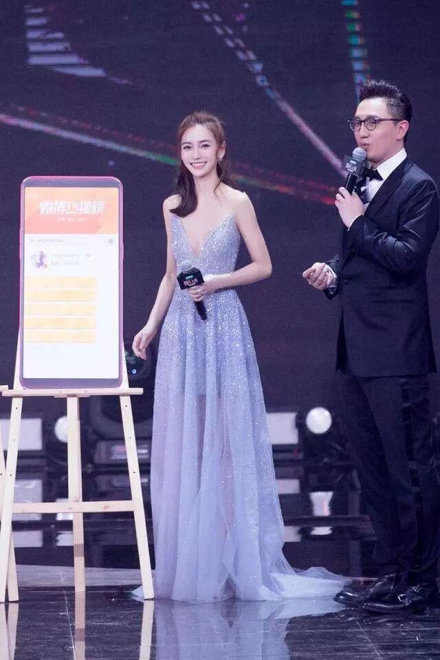 而更加讓人驚艷的是,她當天的裝束,說是艷壓眾人也不過分,身高有1米68的她,穿上一襲藍色晚禮服,亮片的裝飾,在燈光的照耀下閃閃發光,點亮了整個微博之夜,深V到肚臍眼的領口設計,更是大寫的性感,裙身自帶胸下收腰,不僅凹出了小蠻腰,更是勾勒出了傲人的胸脯,讓人忍不住想看多幾眼