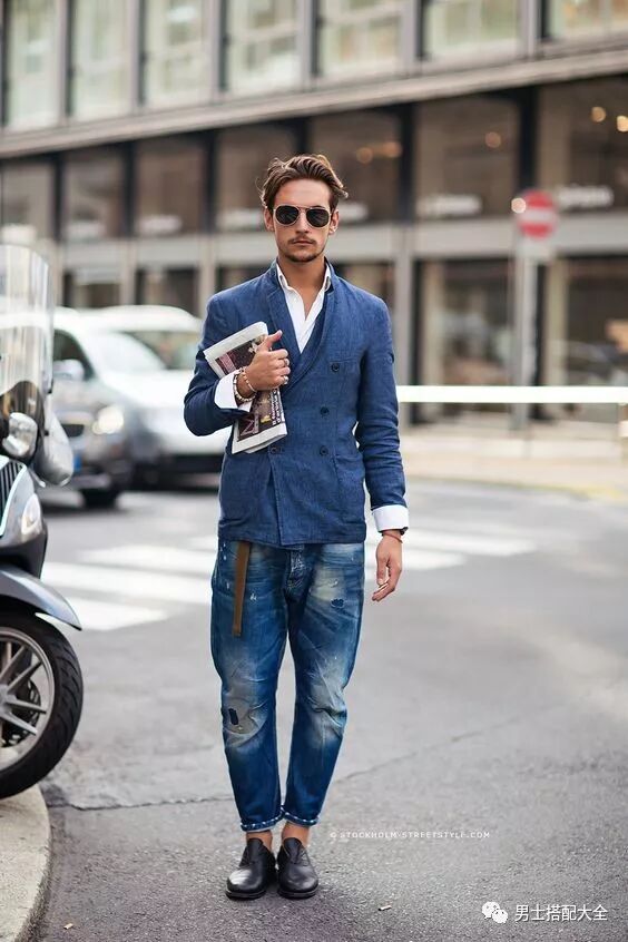 都會人士想穿同色調搭配時,首選西裝外套製造成熟氣度,例如選擇襯衫式的連身褲,外搭一件卡其外套製造鮮明對比,換上藍色外套內搭白色襯衫,加上牛仔褲的多風格混搭,別出心裁的造型,給人耳目一新的感受。