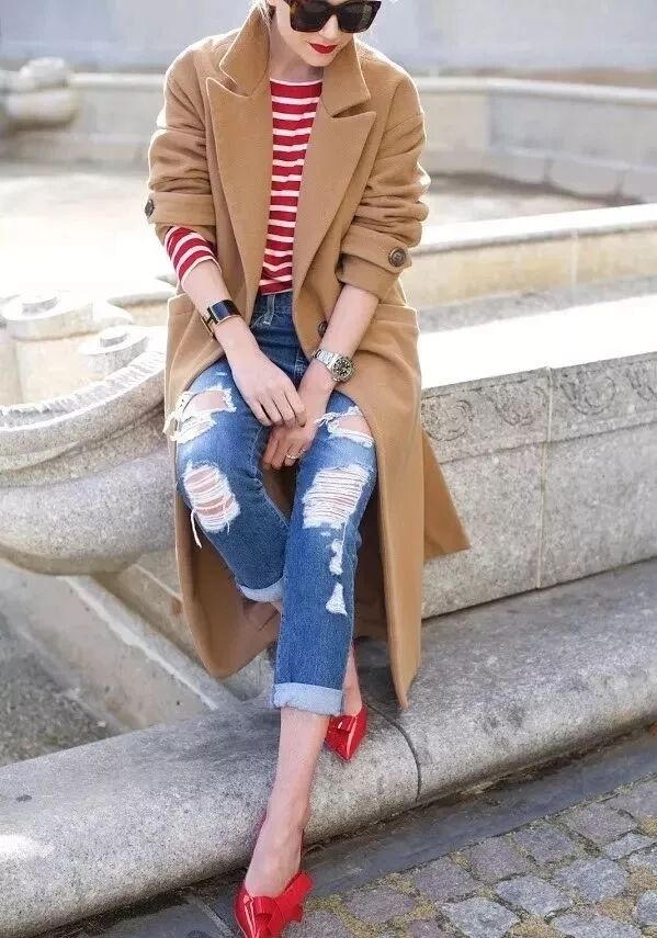 紅白條紋也是十分經典的款,搭配純色大衣內搭更具時髦態度,一抹鮮艷的紅色輕鬆點亮整個寒冬。
