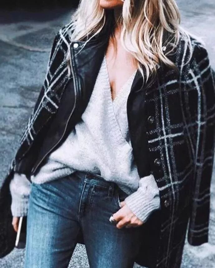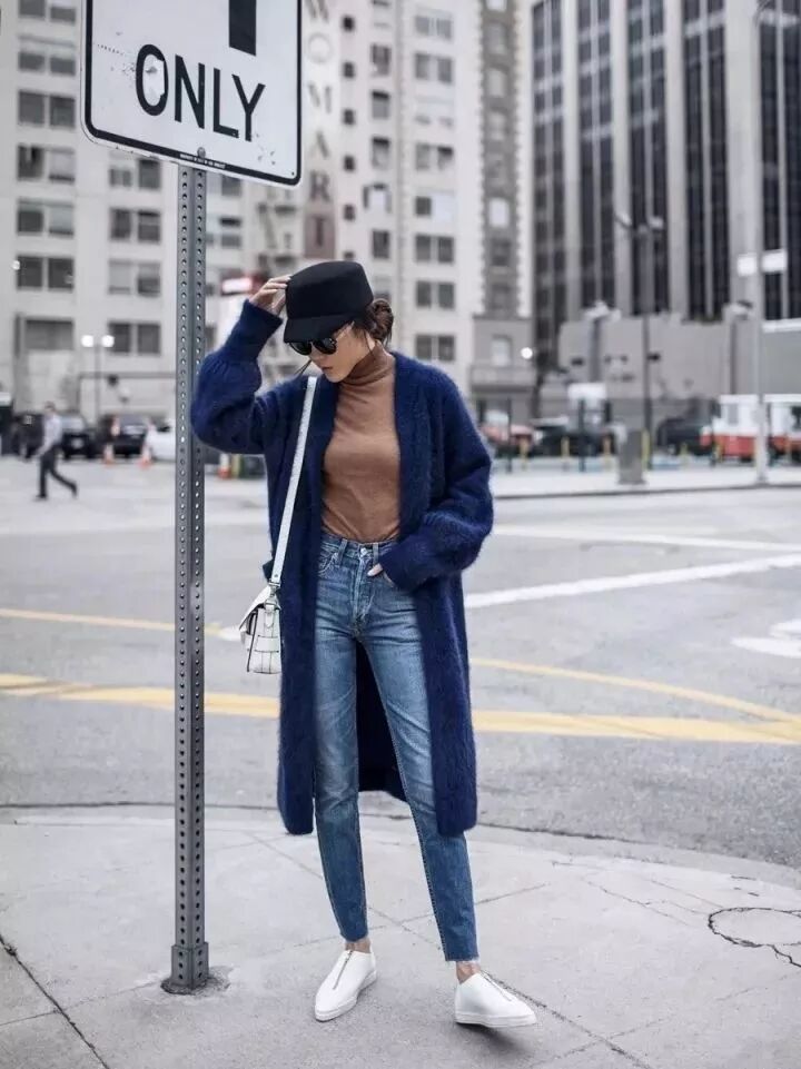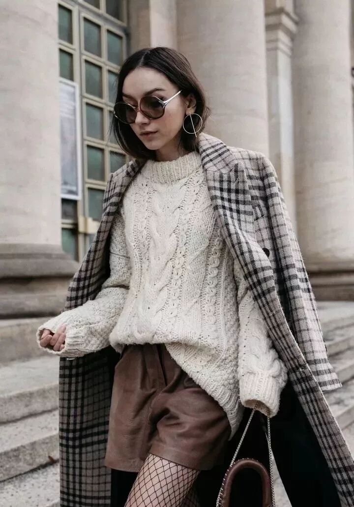 寬大的Oversized風一直是近些年的潮流,而廓形毛衣也是時髦架式十足。用做它做內搭下搭黑色緊身褲,上松下緊的穿法讓你輕鬆顯瘦無下限。