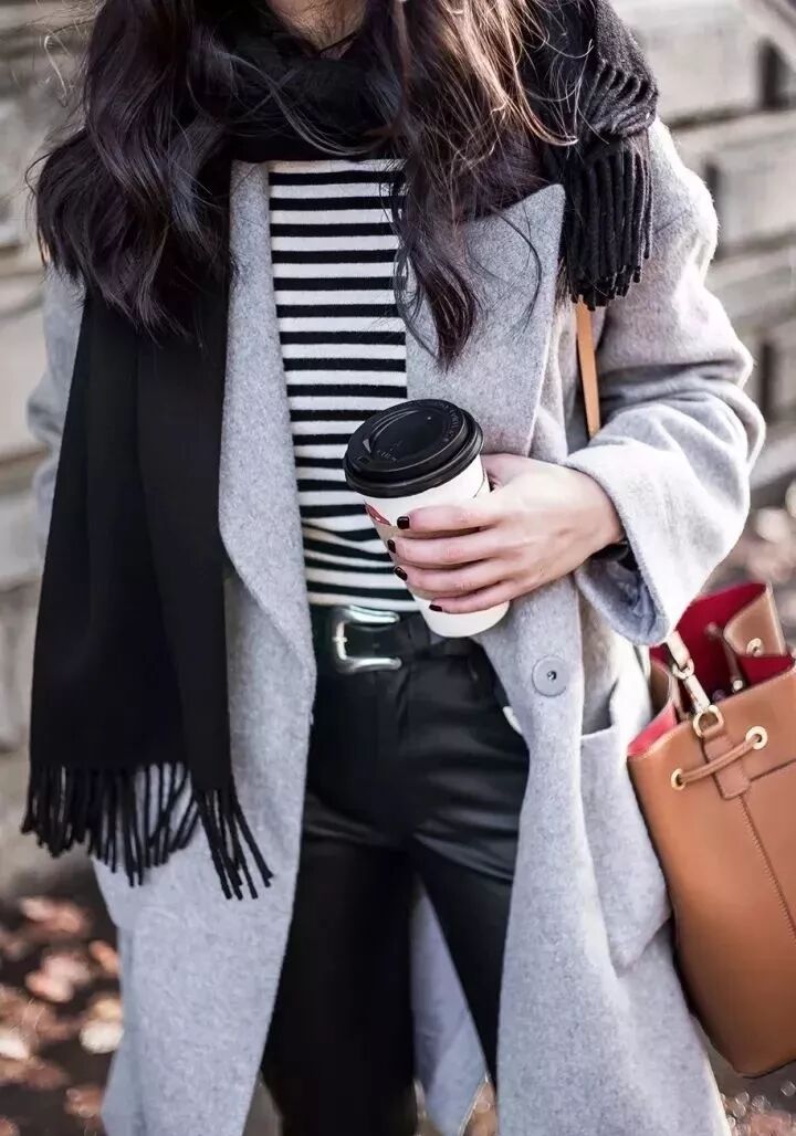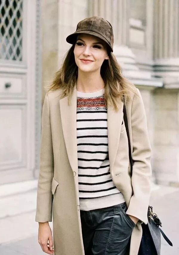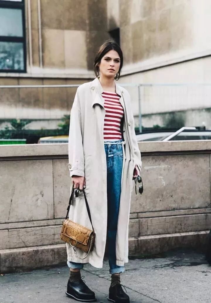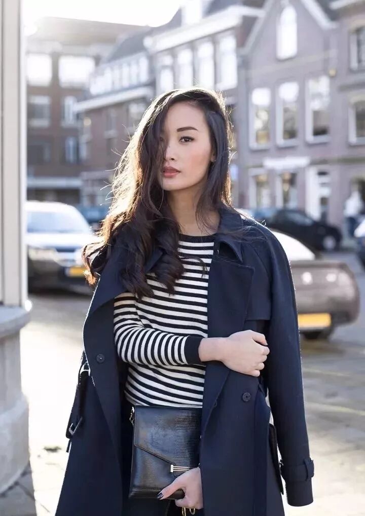 條紋衫是每個女孩的衣櫃必備單品,其百搭程度無論搭配什麼外套都無敵好看,而跟大衣搭配更是腔調十足。