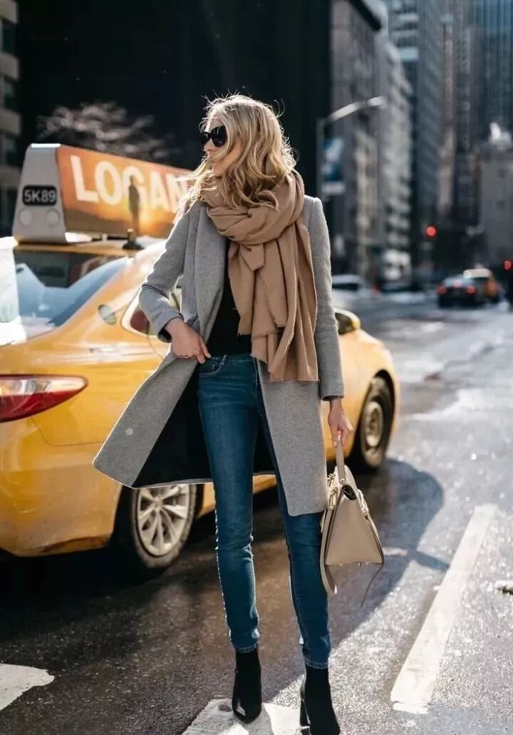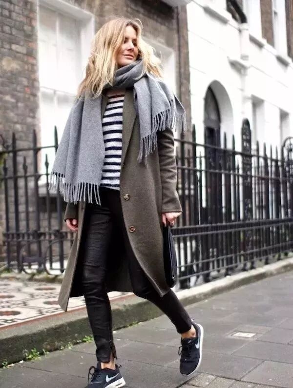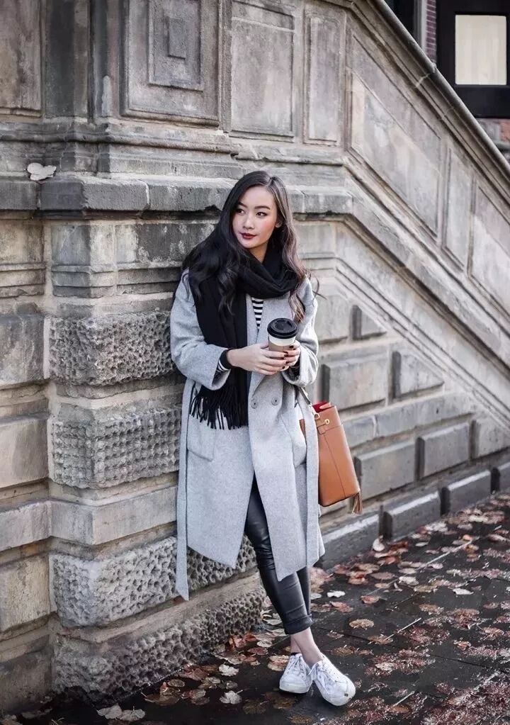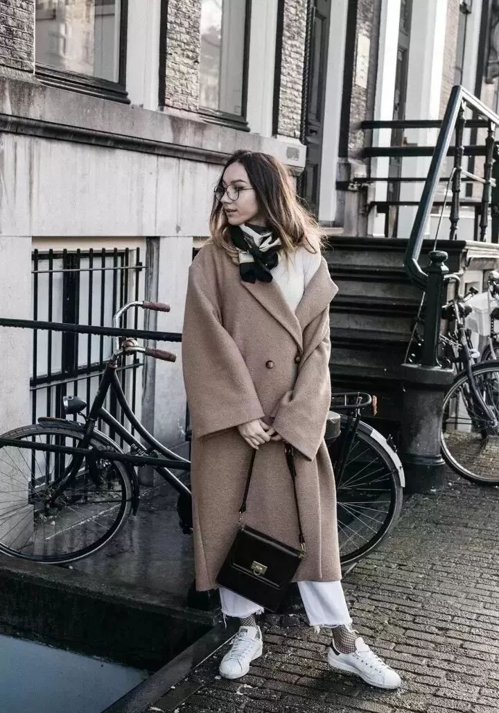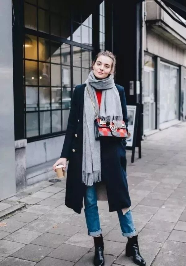 也可以在脖子處簡單地點綴上一條絲巾或圍巾,在保暖的同時更是提升了整體造型的質感。