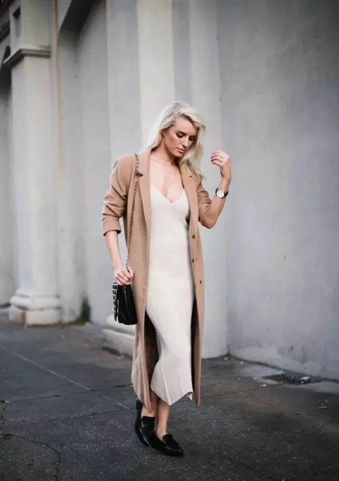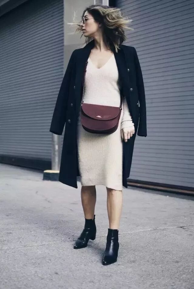 小仙女們如果畏寒,那麼針織連衣裙絕對是最好的選擇,不僅保暖滿分,而且女人味十足。淺色的V領針織裙知性中帶著一絲小性感,搭配大衣後高級感十足,輕鬆穿出女神范。