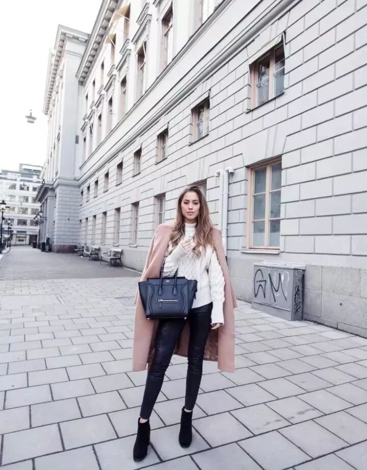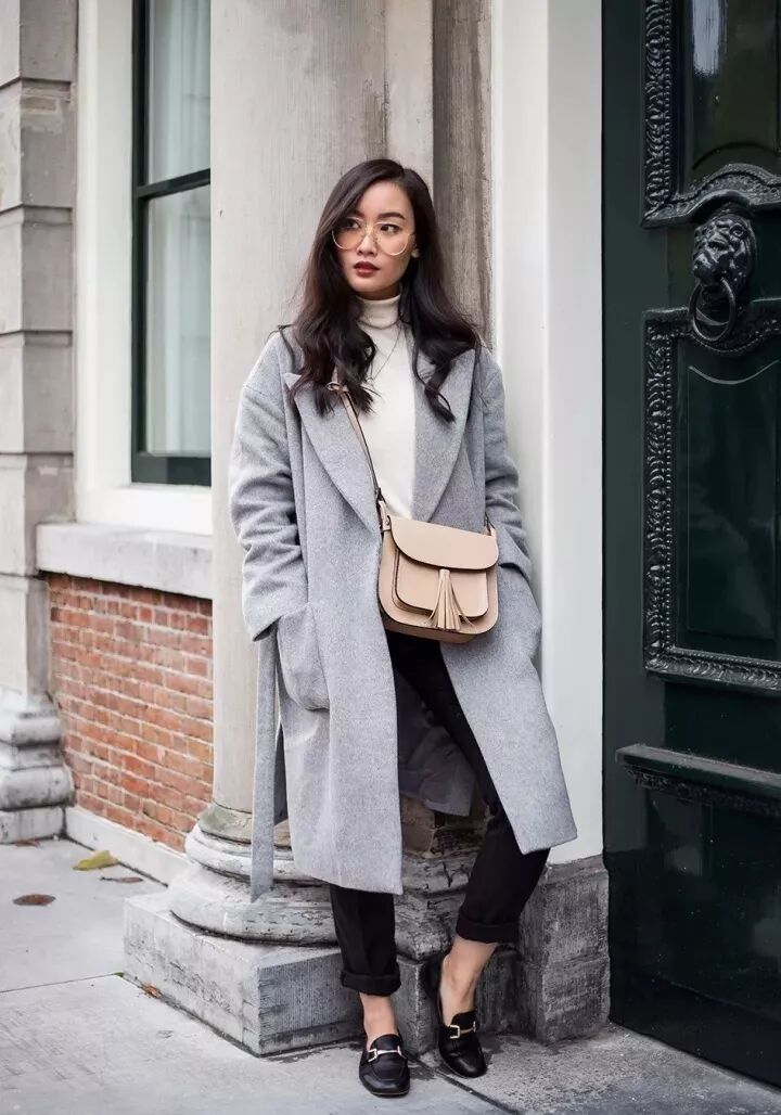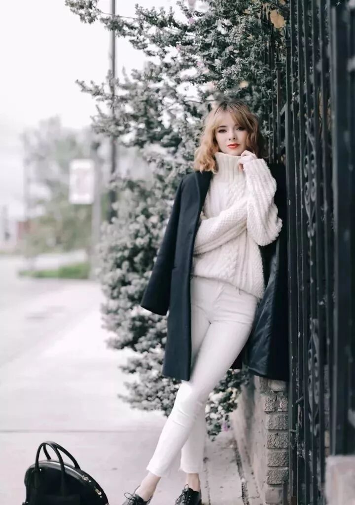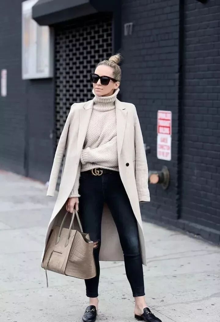 高領毛衣跟大衣絕對是最佳cp。時髦又保暖的它十分百搭,簡單的黑白色就能穿出好氣質。
