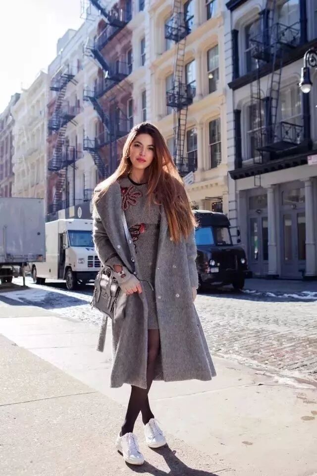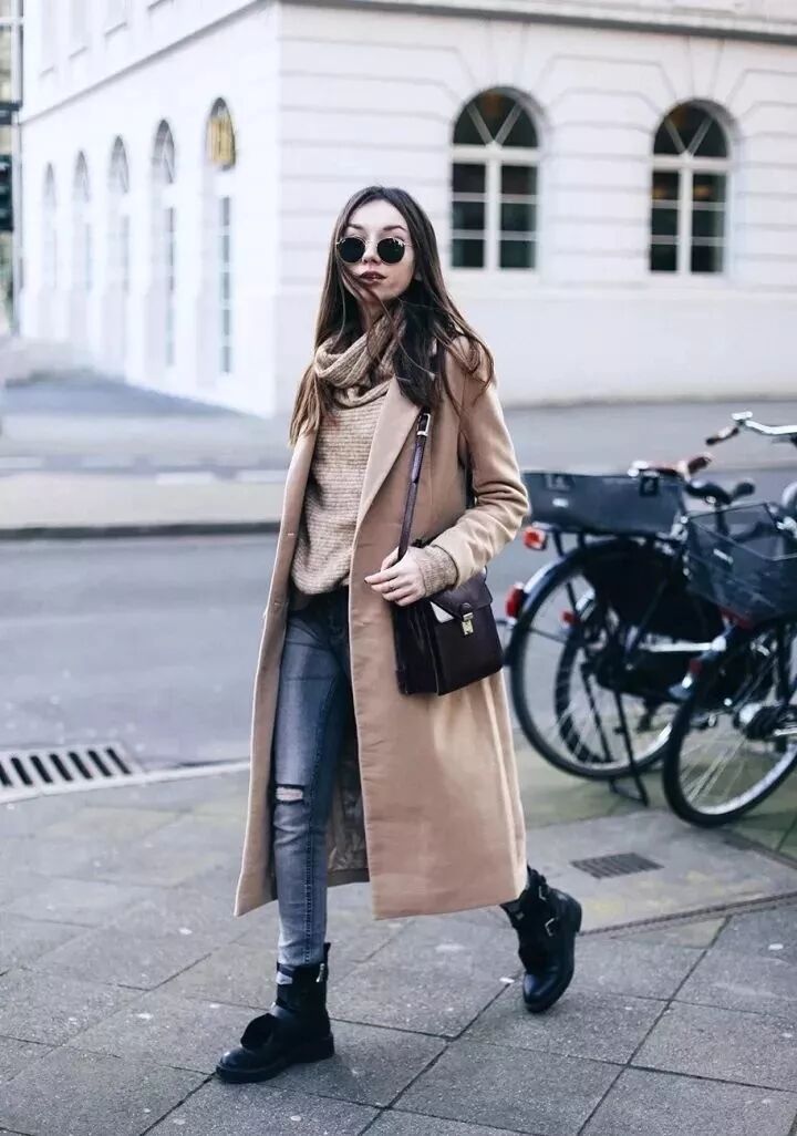 長款針織裙+長款大衣+靴子,不需要過多點綴就能讓你化身街頭最潮女王。