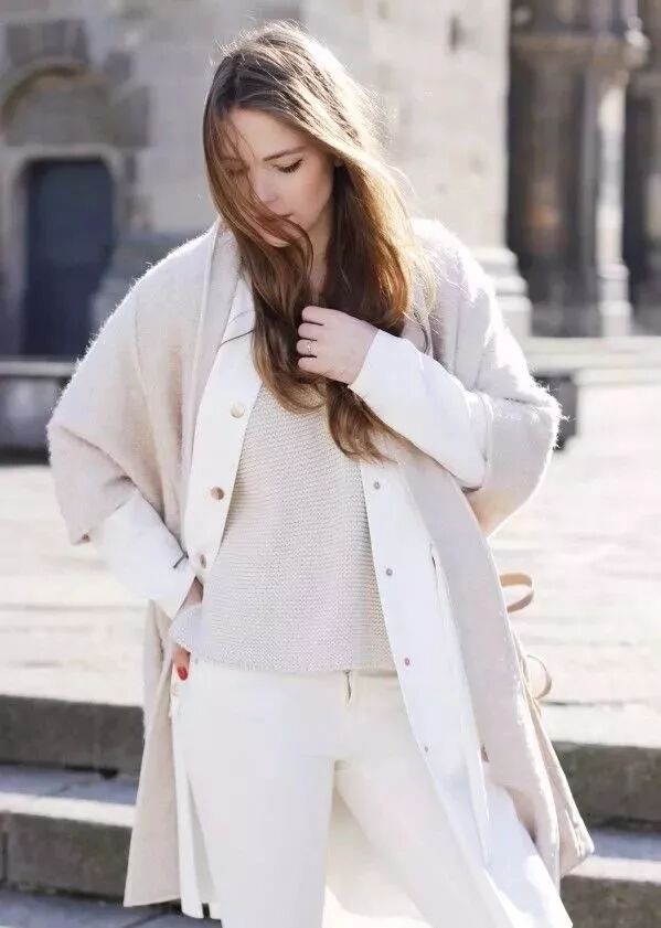 在你懶得想搭配的時候,同色系搭配無疑是最省心的選擇。不用想如何配色,而且整體一致的顏色也是打造極簡搭配的最好方案。
