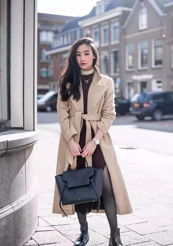 想要讓穿搭來掩蓋身材的不完美,那麼首先就要營造高腰線。特別是搭配長款大衣的時候,露出內搭的高腰線是制勝法寶,否則就會顯得整個造型又笨又重。