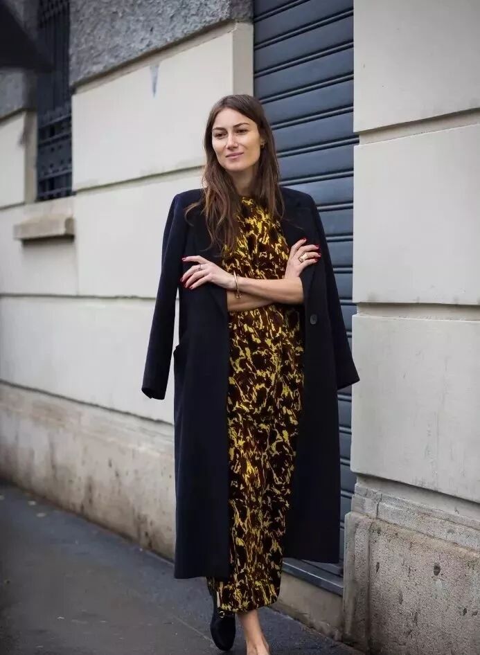 誰說冬天就不能穿裙子了,溫暖的大衣裹在連衣裙外面,這個冬天照樣美麗暖人。用一條印花連衣裙做內搭,又仙又柔簡直是秋冬最佳。