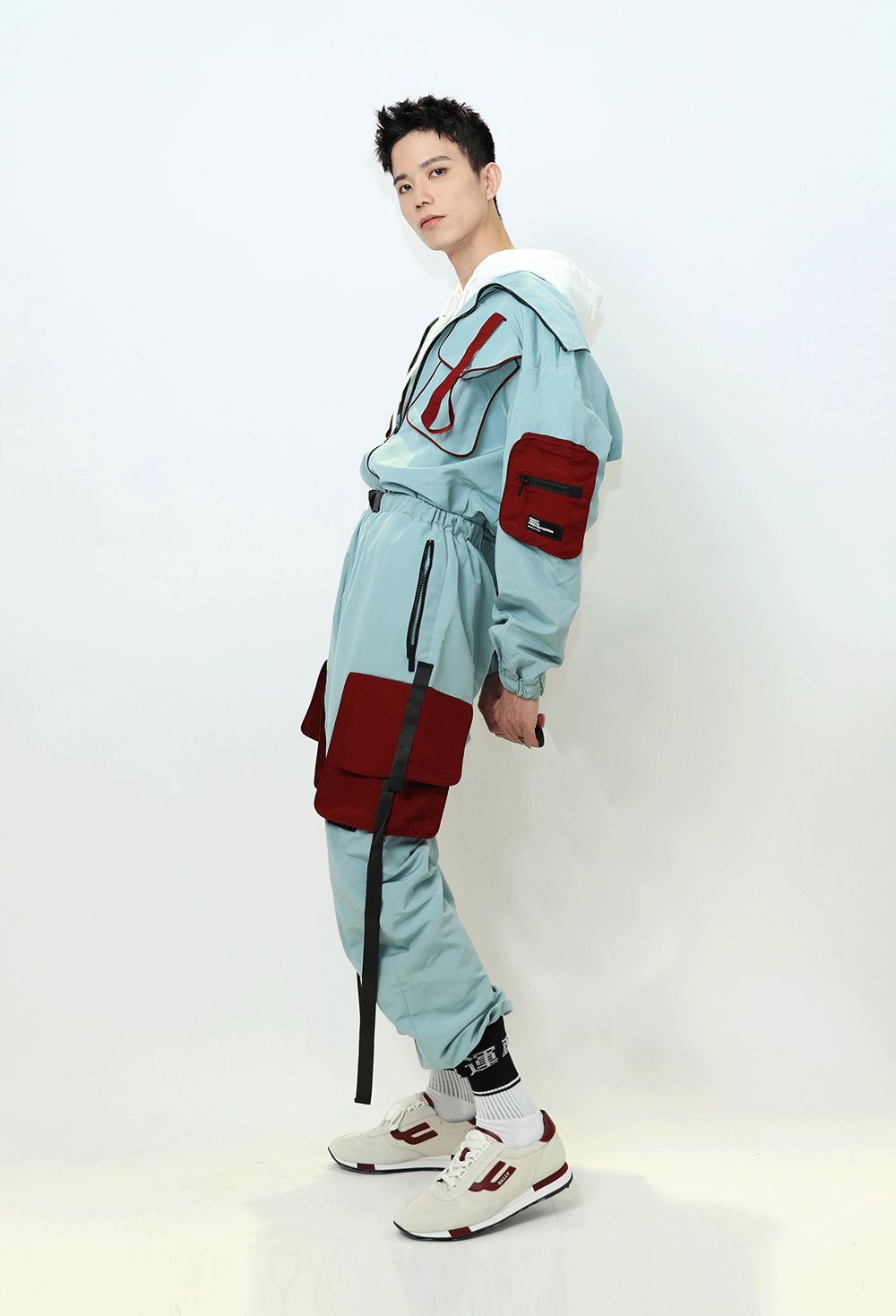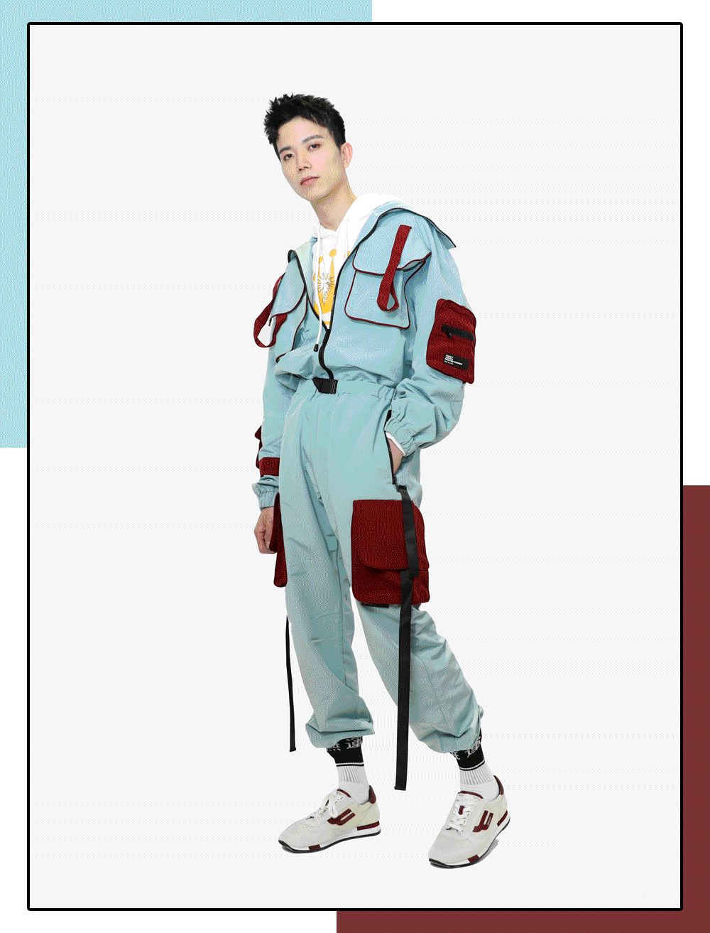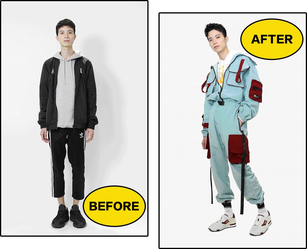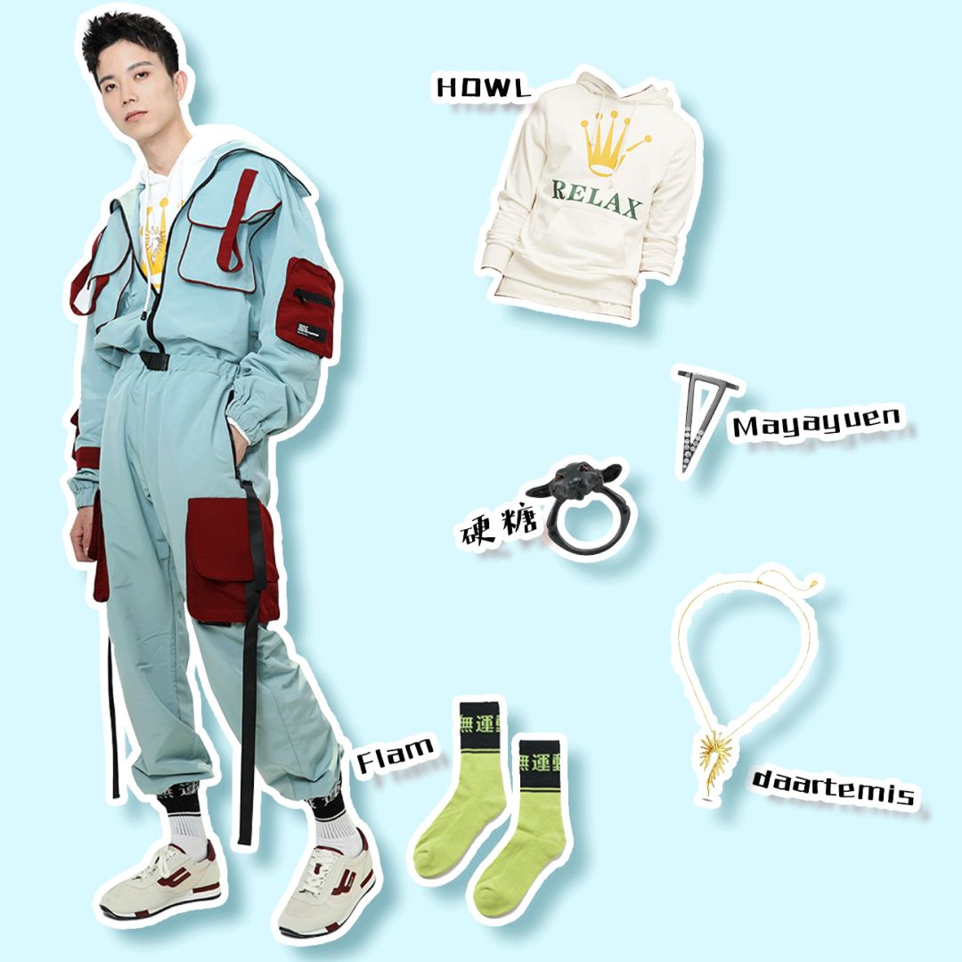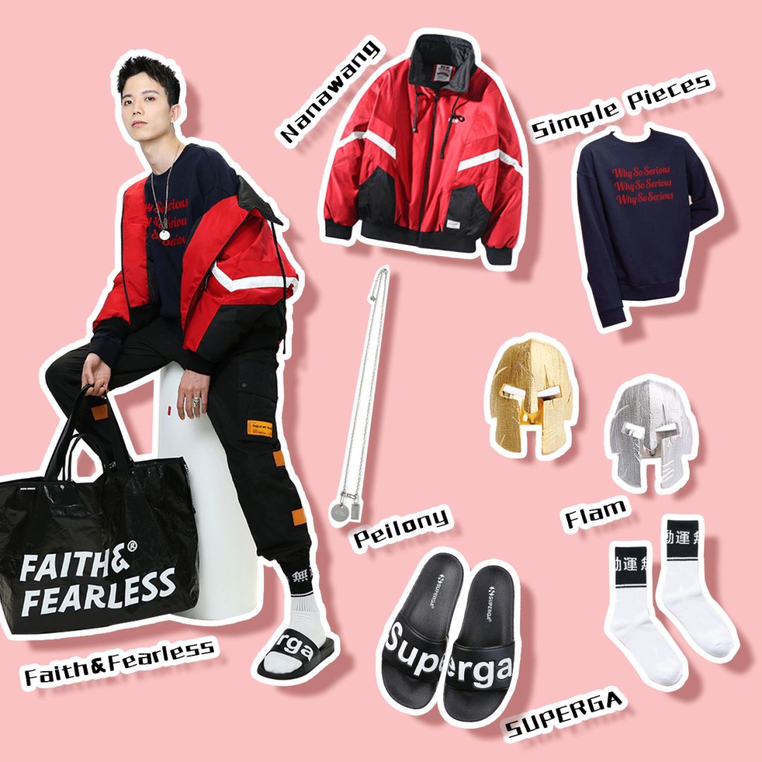 畢竟是美術生,比普通男生懂點搭配。不過他說,平時老一身沒什麼創意的黑白灰運動裝,這次想突破一下自己,走走加點顏色的街頭風。