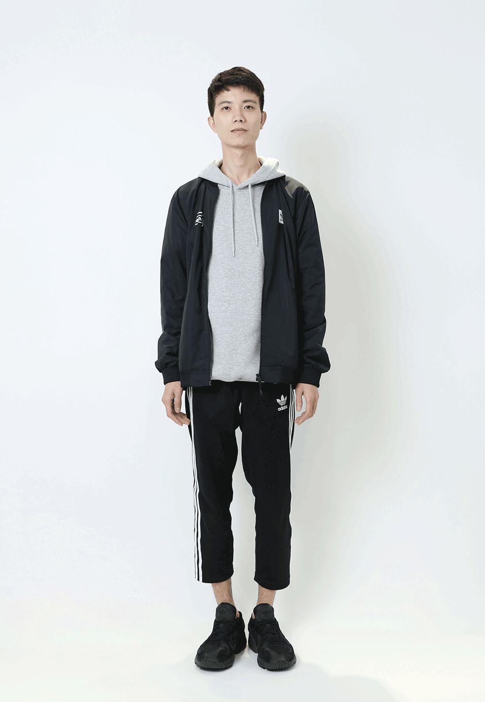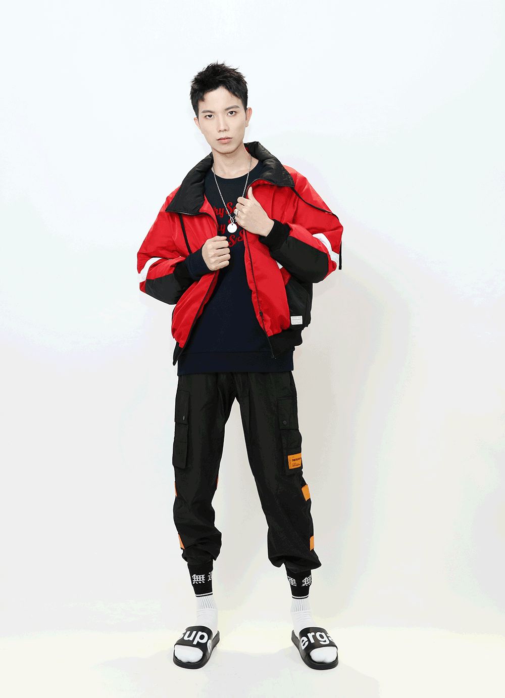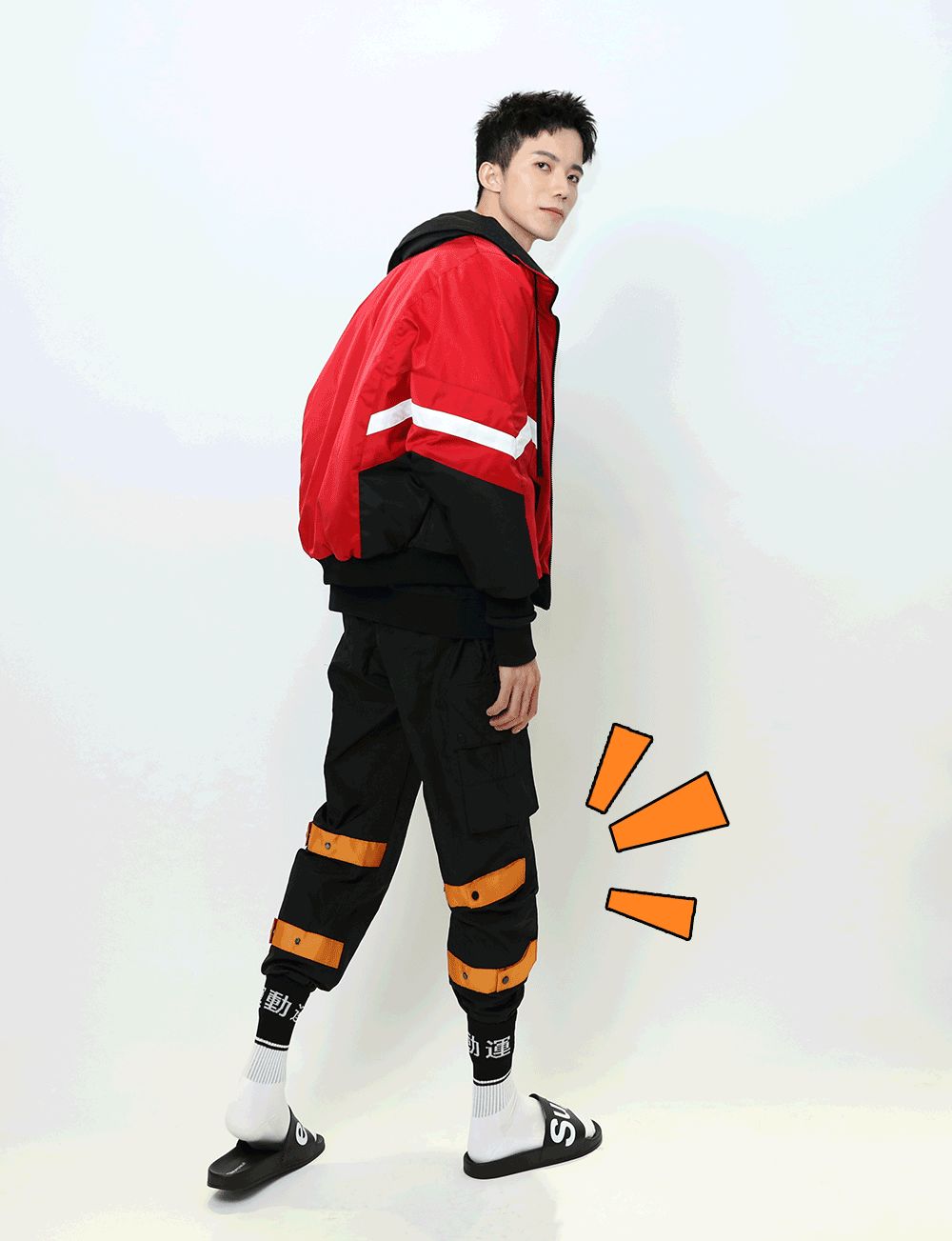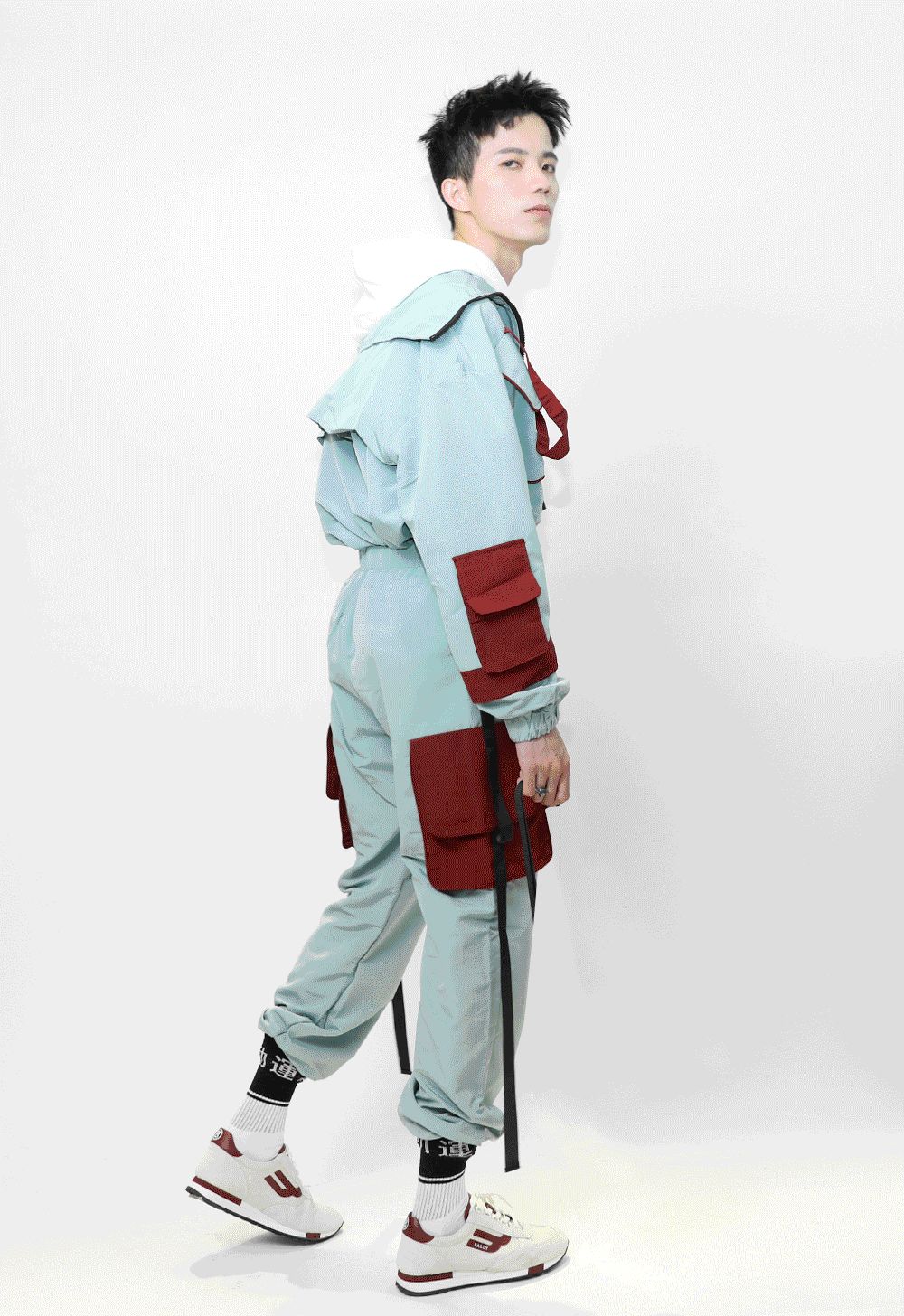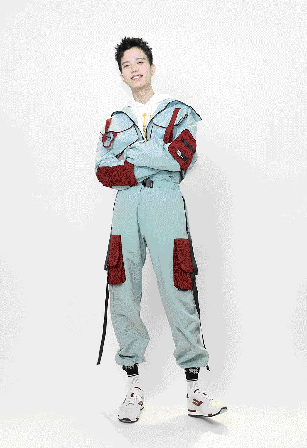 畢竟是美術生,比普通男生懂點搭配。不過他說,平時老一身沒什麼創意的黑白灰運動裝,這次想突破一下自己,走走加點顏色的街頭風。