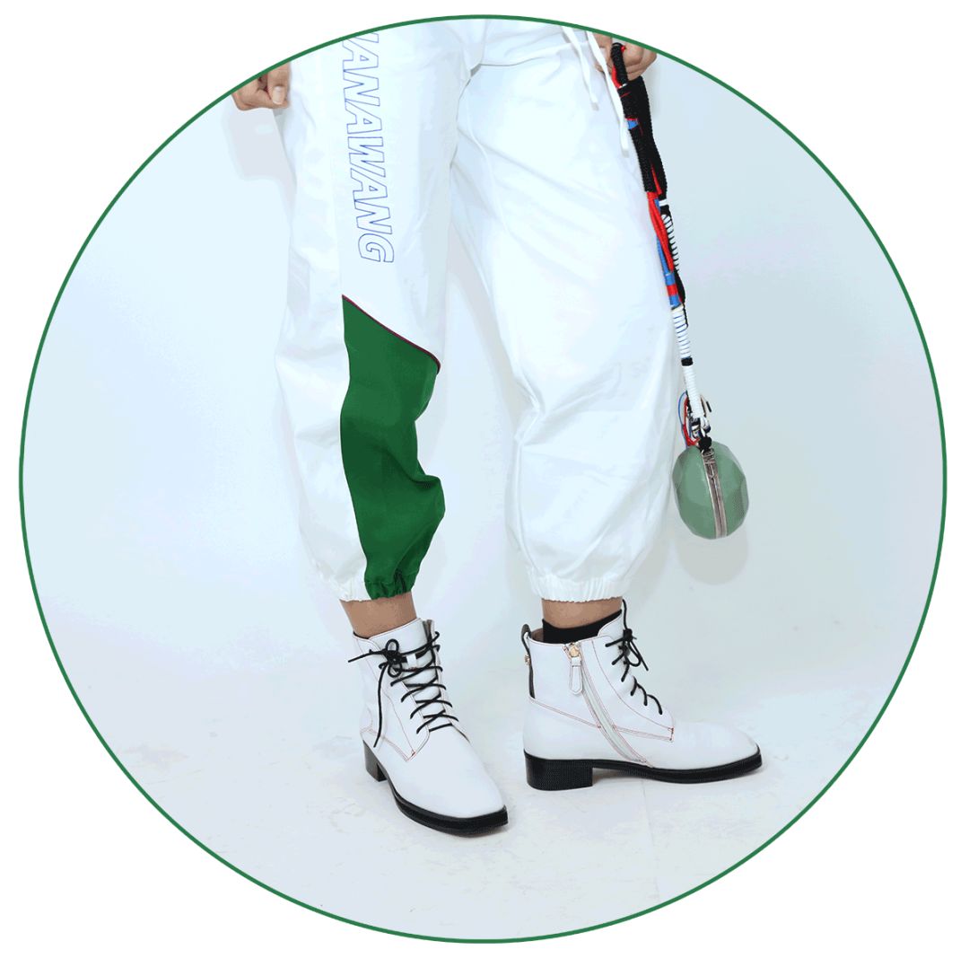 北山制包所的胸包斜背、肩背、提手上都很好看,後面綁帶的漆皮中筒靴,比起襪靴、及踝靴更加率性點。