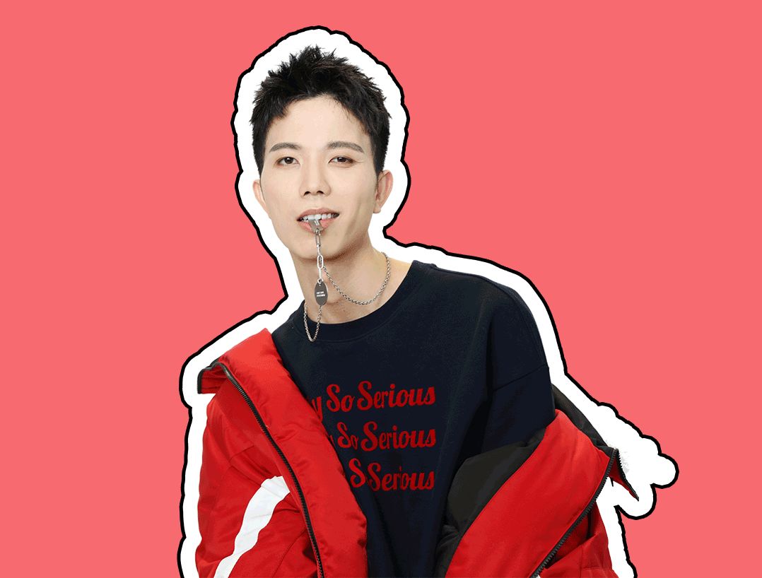 我看到他想擺脫黑白灰的決心在閃閃發光。內搭選的是和外套顏色呼應的slogan衛衣。