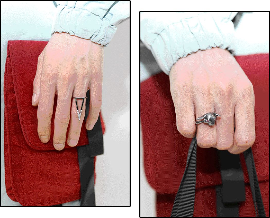 我平時也蠻愛戴戒指這種時髦的小玩意兒,比如上次去紐約看維密時戴的Mayayuen,像個小鎧甲似的,我還挺喜歡的。