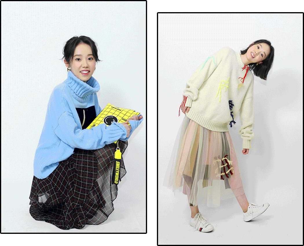 後來和她探討吃什麼東西可以補回髮際線時,她才放鬆下來……給她搭配第一套是和她的氣質滿合的毛衣配紗裙。完全不挑人~氣質甜的女生都可以這麼搭。