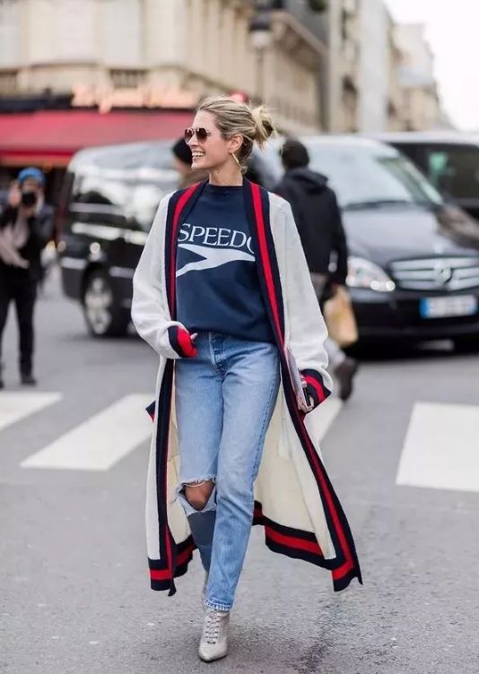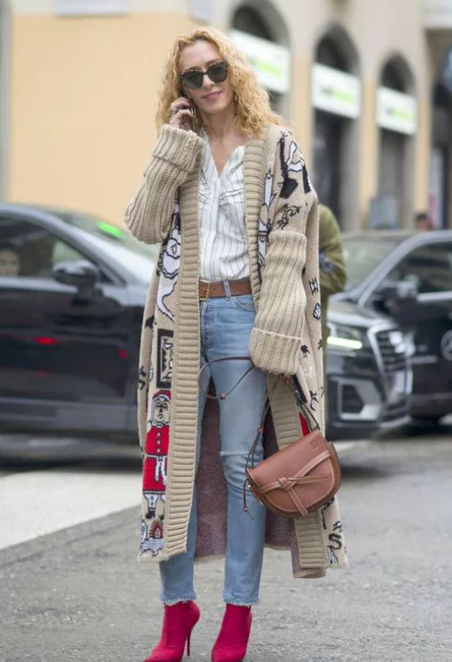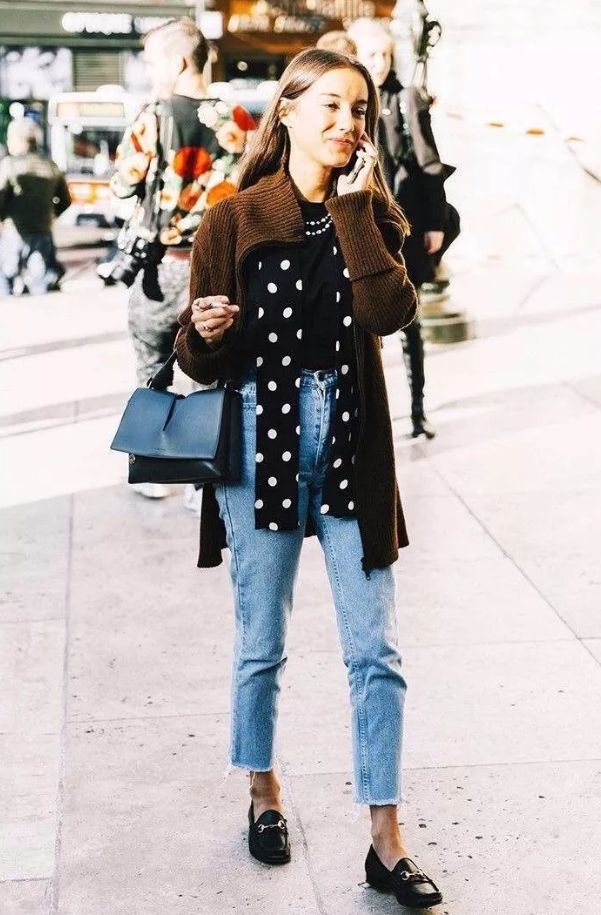 腿粗、胯大最關鍵就是遮住臀部,所以長度在膝蓋附近的中長款針織開衫就挺適合。