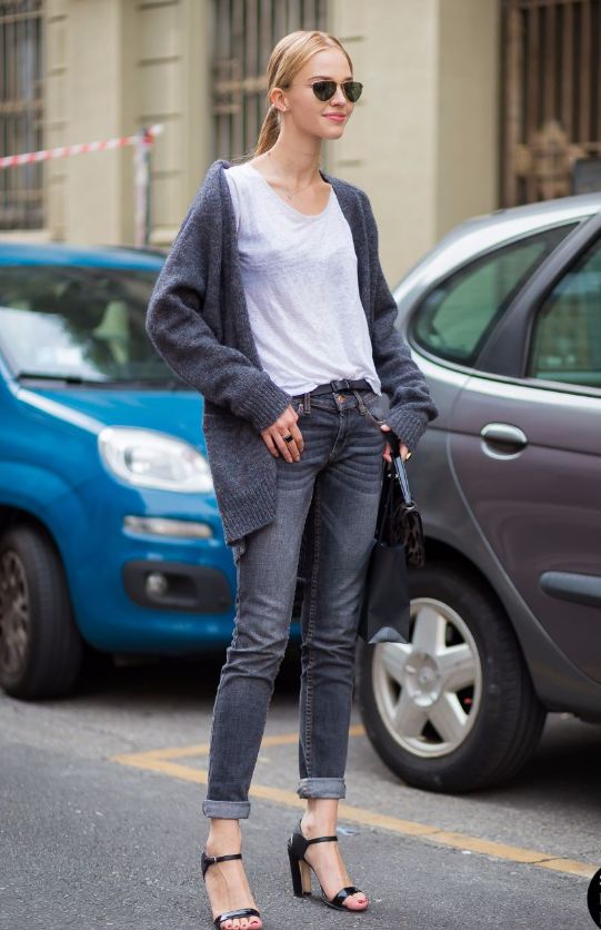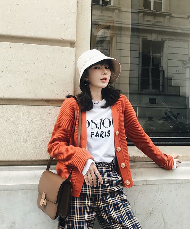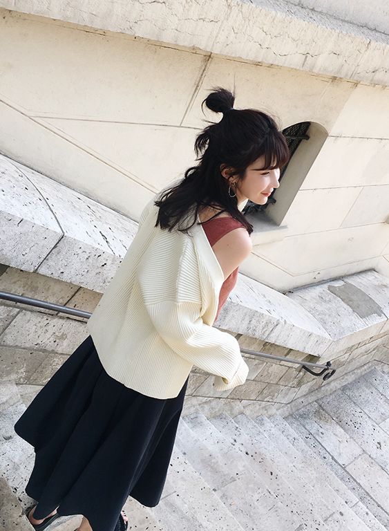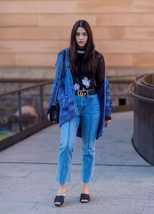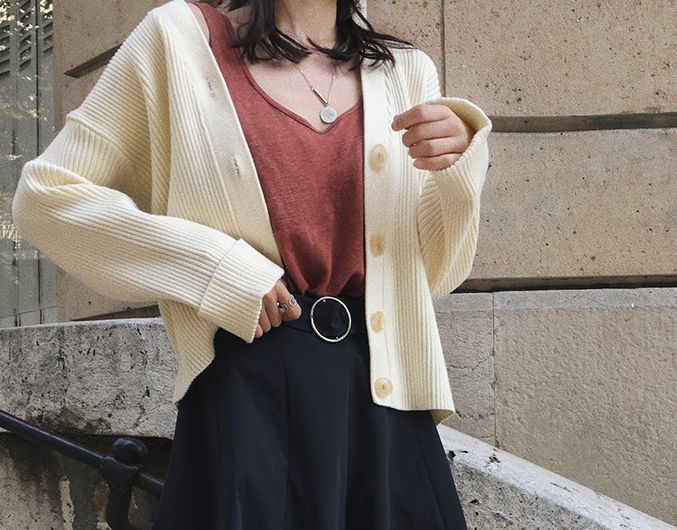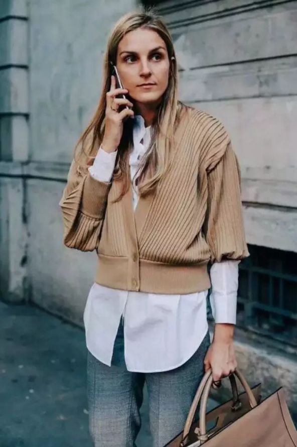 要麼直接選擇短款,要麼把針織開衫塞進下裝里面,不過塞進去的只適合比較薄的款式哦!