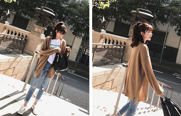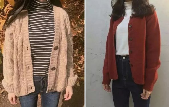 中長款針織開衫剛好能夠遮住臀部和大腿,是對梨形身材的女生比較友好款式。
