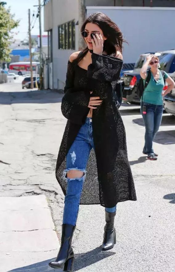 及踝的超長款針織開衫,高瘦美眉最能穿出氣場~