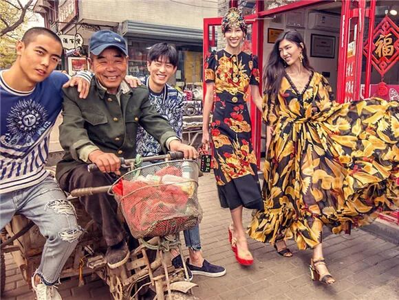 Dolce & Gabbana的模特來到中國首都,找到天安門、北京胡同等一系列標誌性場景,與黃包車司機、胡同大嬸大爺合影,營造出劇烈的反差。