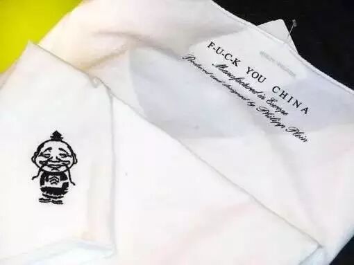 幾年前,德國不萊梅一家叫Kult商店出售印有辱華字眼T恤衫。在其T恤背部,公然印著「F-U-C-K YOU CHINA」,在衣服正面左下角加印了一個代表中國的小醜。
