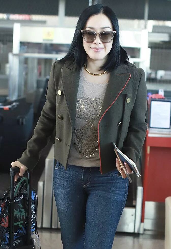 鐘麗緹身穿一條十分洋氣的喇叭牛仔褲,這可是凸顯大長腿神器,讓鐘麗緹180身高盡顯,真心讓人們羨慕不已,超級洋氣。