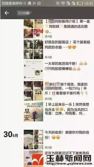 「自己接觸到的微商群體,多數是對自己的工作、收入不滿意,想兼職賺點外快的人,包括上班族、家庭主婦等。」莉莉說,開始做阿膠糕的微商後,被拉進了好幾個微信群,其中一個是500人的大群,一個是20人-30人的小群,每天這些代理就在群里溝通和學習。