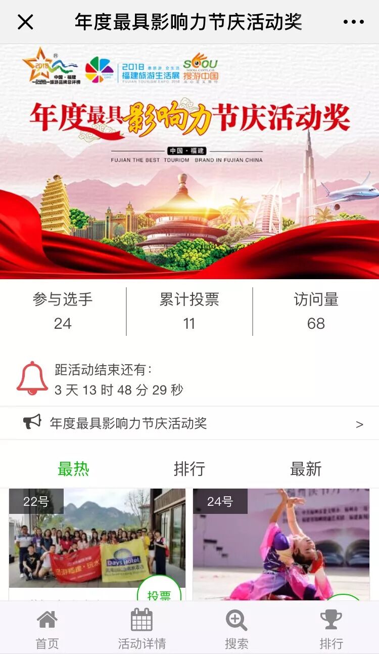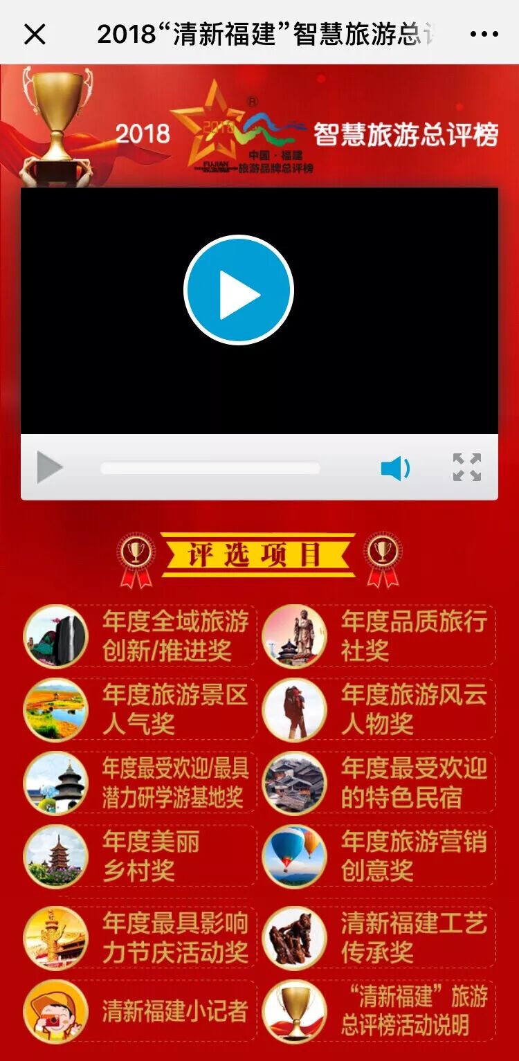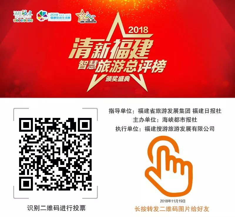 由福建省旅遊集團指導、 海峽都市報社主辦, 福建搜遊旅遊發展有限公司承辦的 2018「清新福建」智慧旅遊總評榜活動 開始投票啦!!!