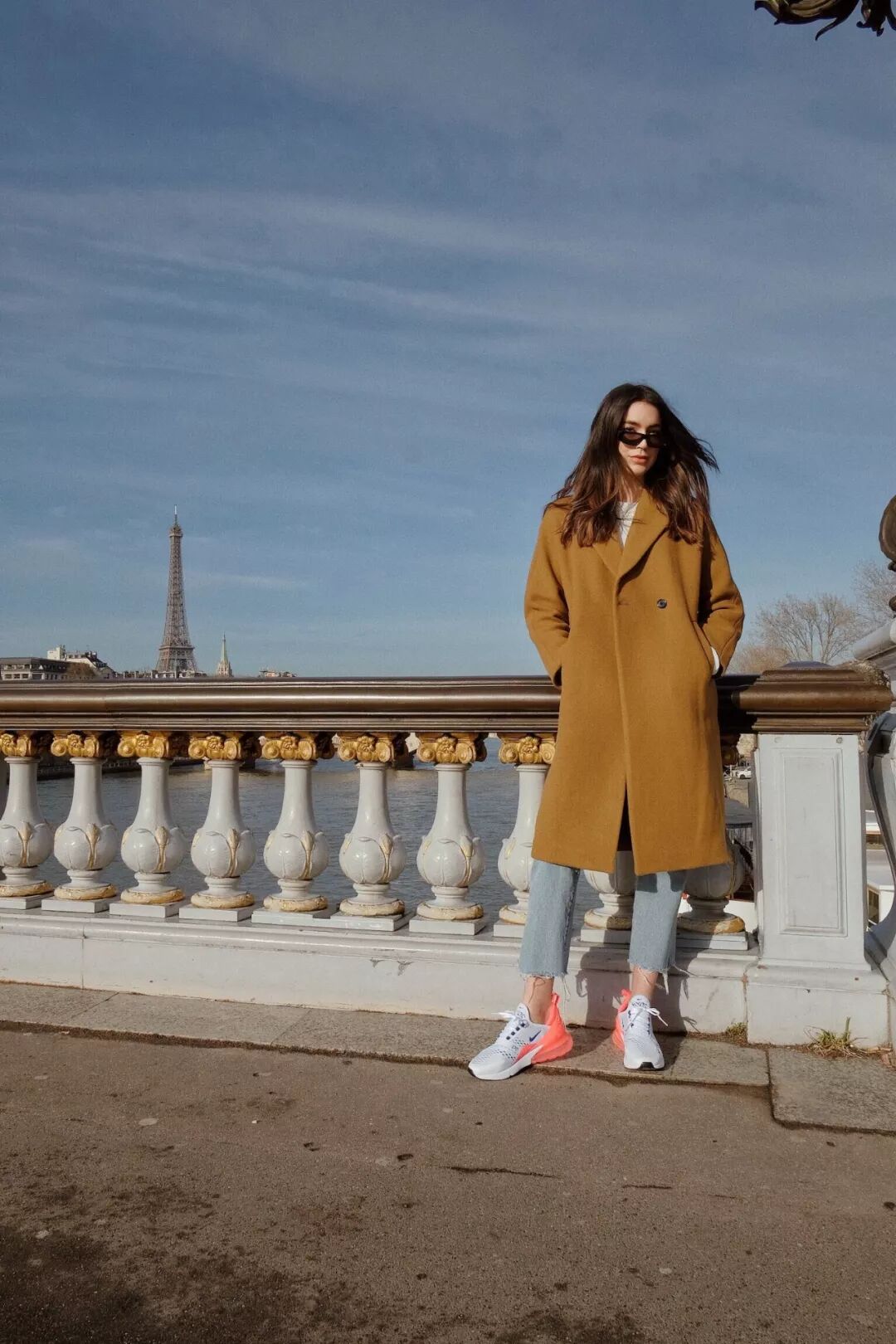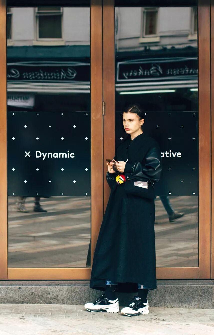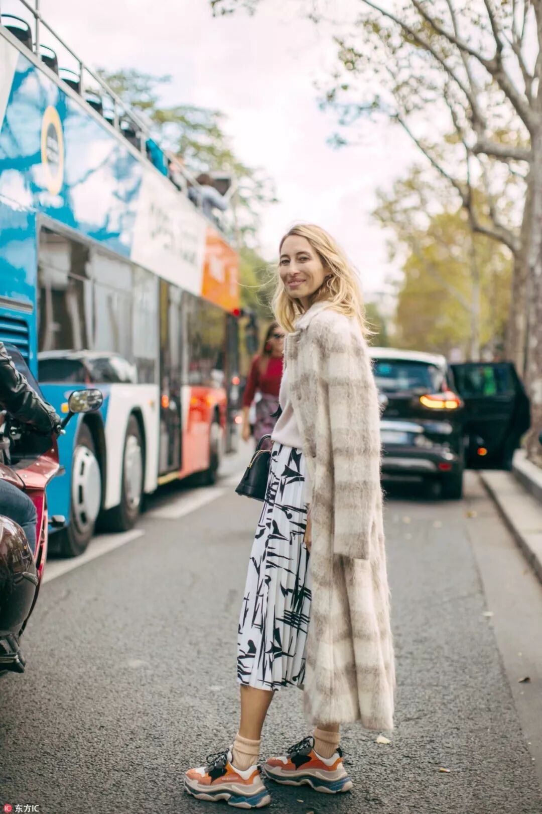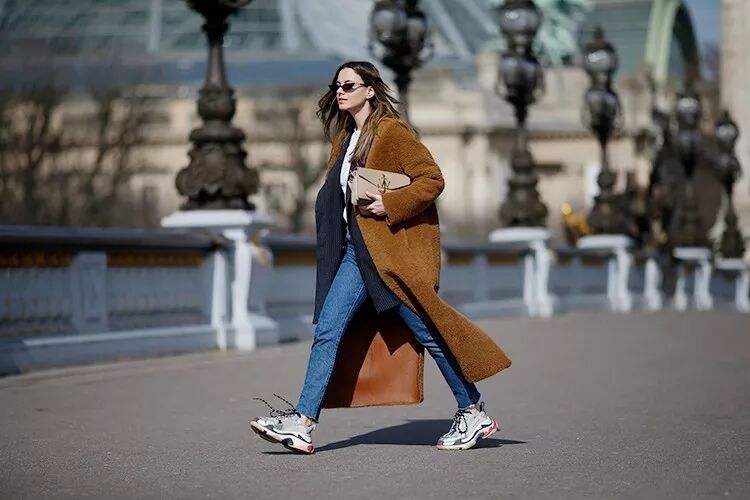 ▲炫彩球鞋可不只屬於塑膠跑道和運動場所,用來搭配大衣可以讓你瞬間喜提「前衛少女」的名銜。比如博主Brittany Xavier這樣一件媽媽輩的駝黃大衣,如果搭配職場輕熟類的鞋子,要麼顯黃,要麼顯老,而一雙白色與熒光橙漸變的運動鞋則不同,一下子能夠前衛得足以成為一整條街的排頭兵。