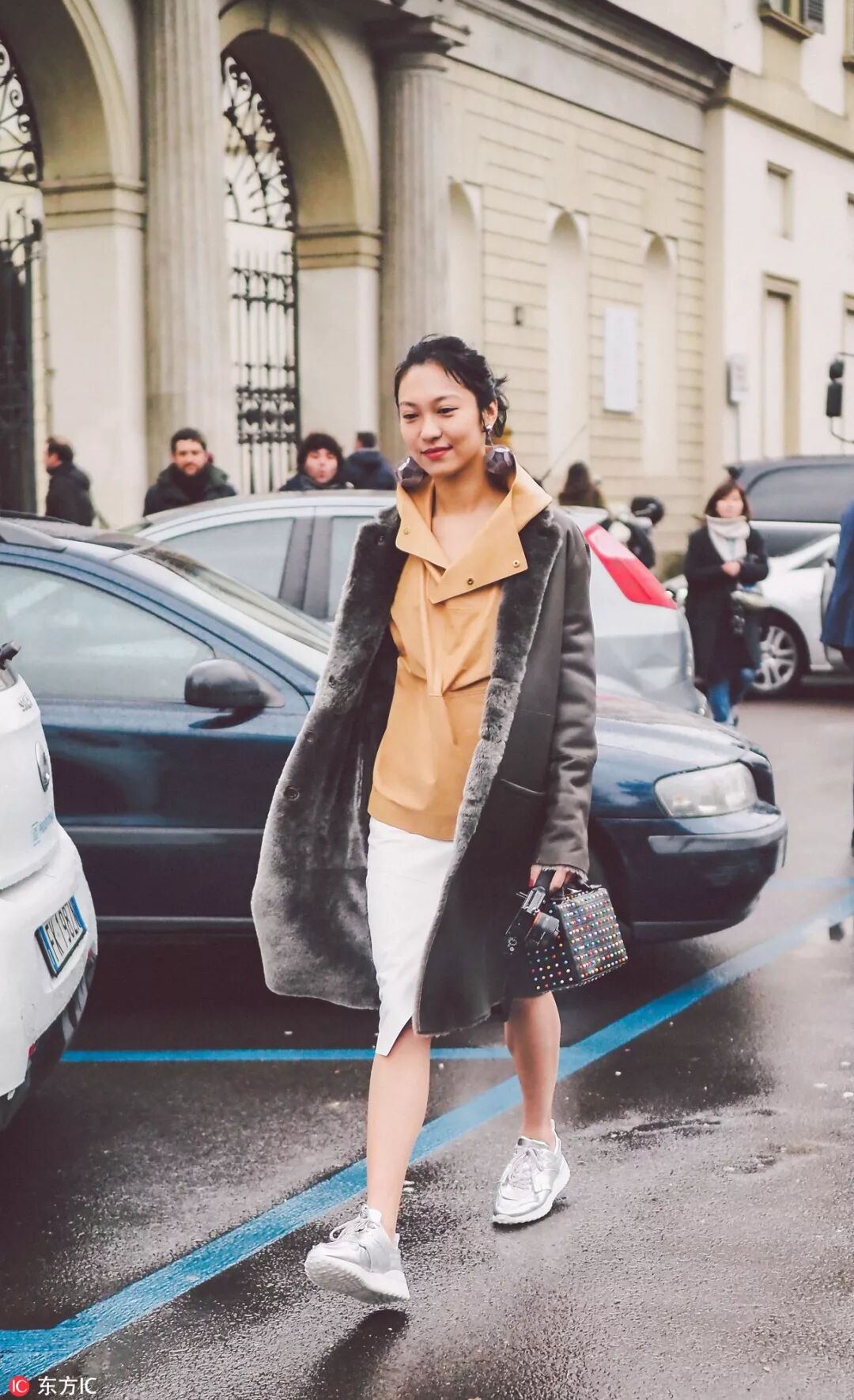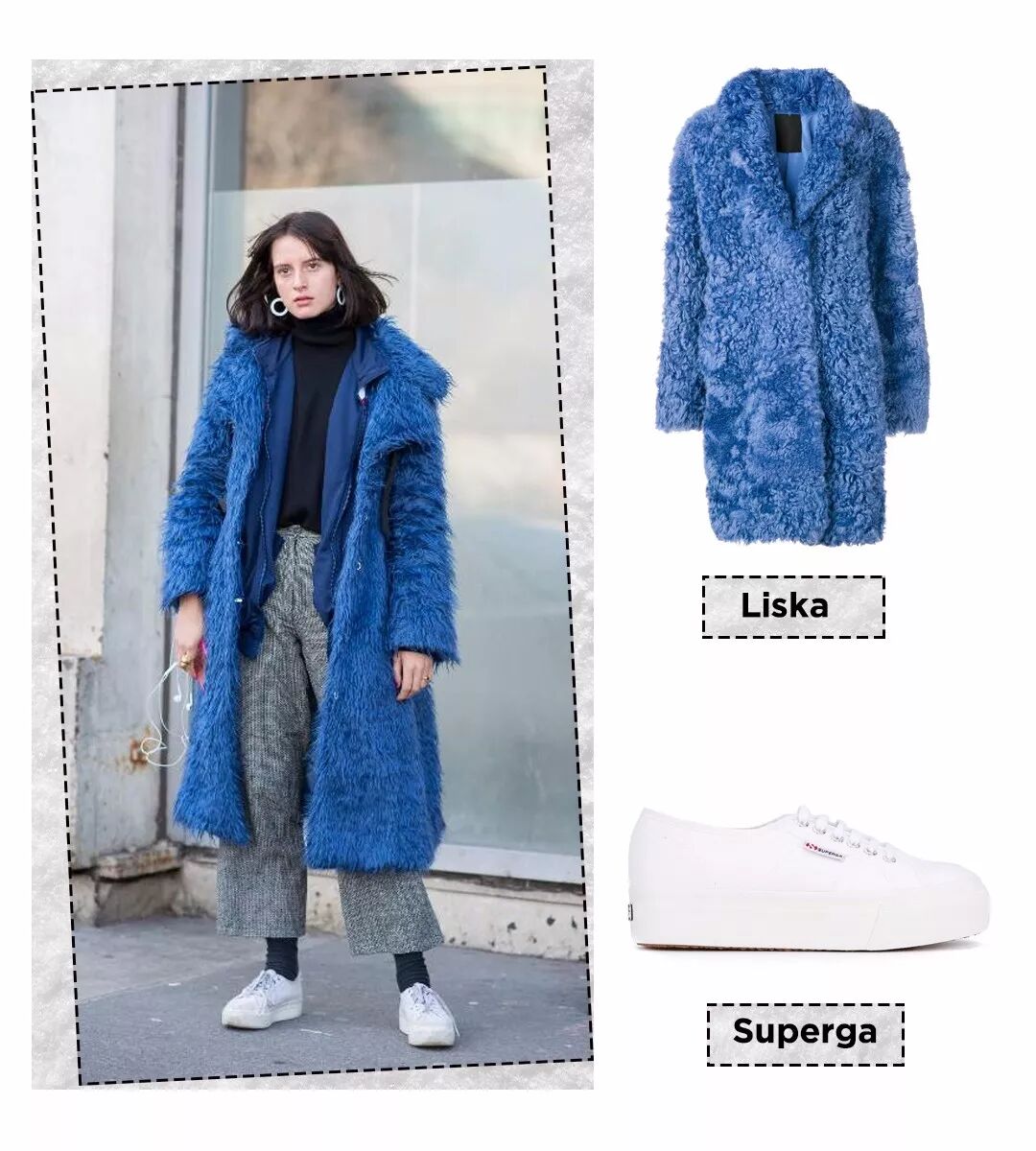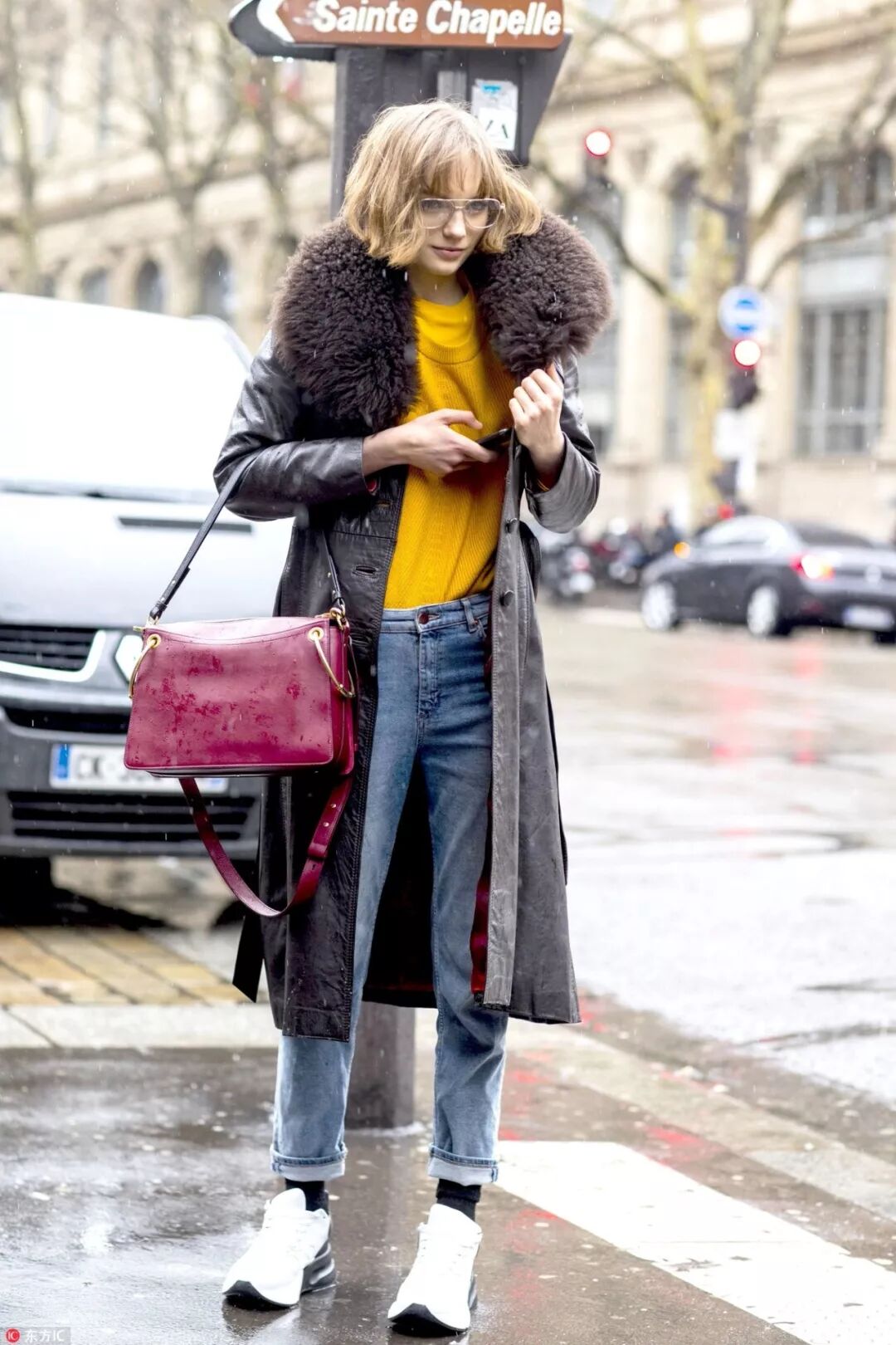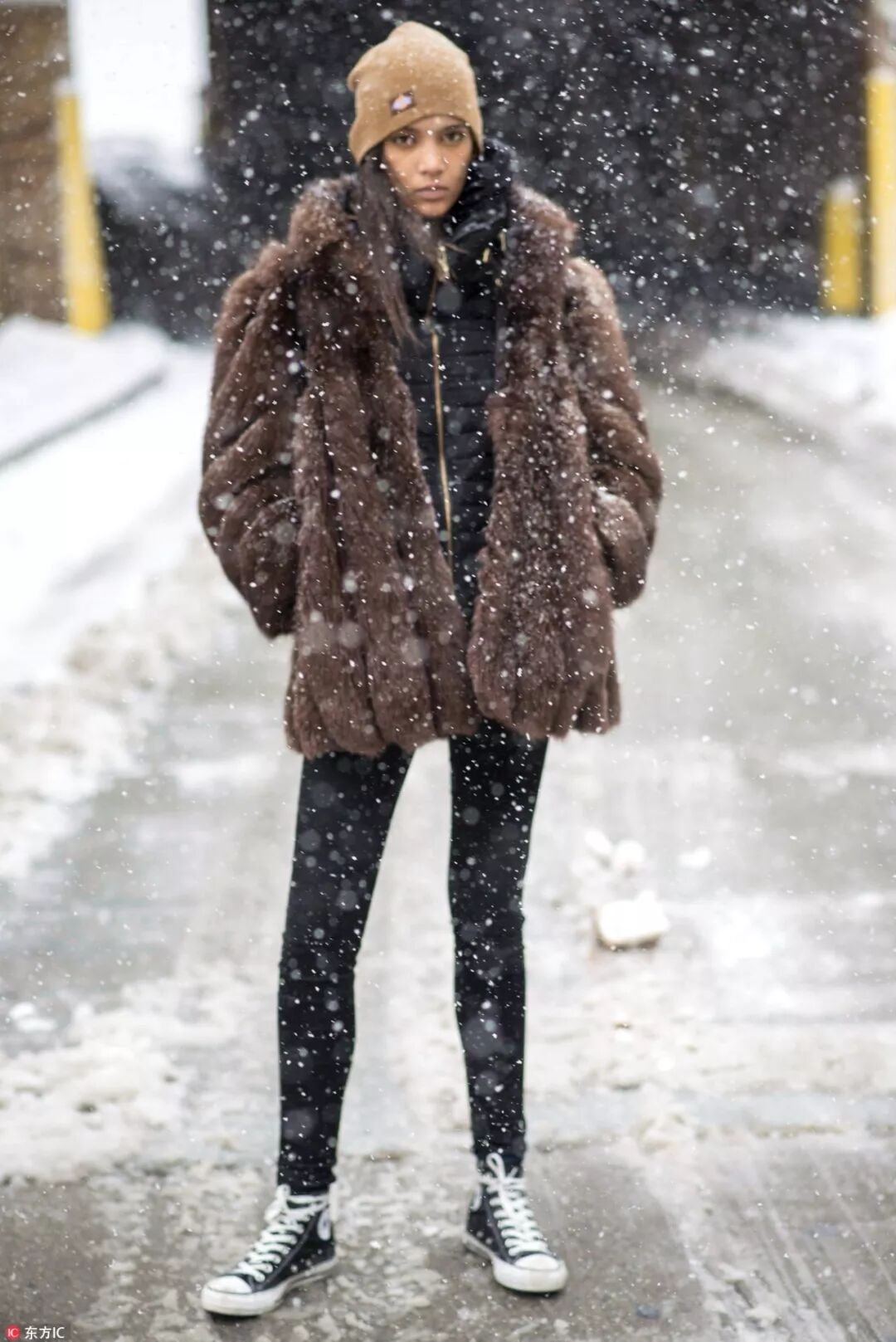 ▲最先披起皮草大衣和泰迪絨大衣的姑娘們,冬天剛剛開了個頭,先不要急著搭配同樣厚重的雪地靴和皮靴,讓帆布鞋的朝氣平衡一下皮與絨的富貴和腫脹,隨心所欲,無所拘束,美式摩登就這幾天最合適了!