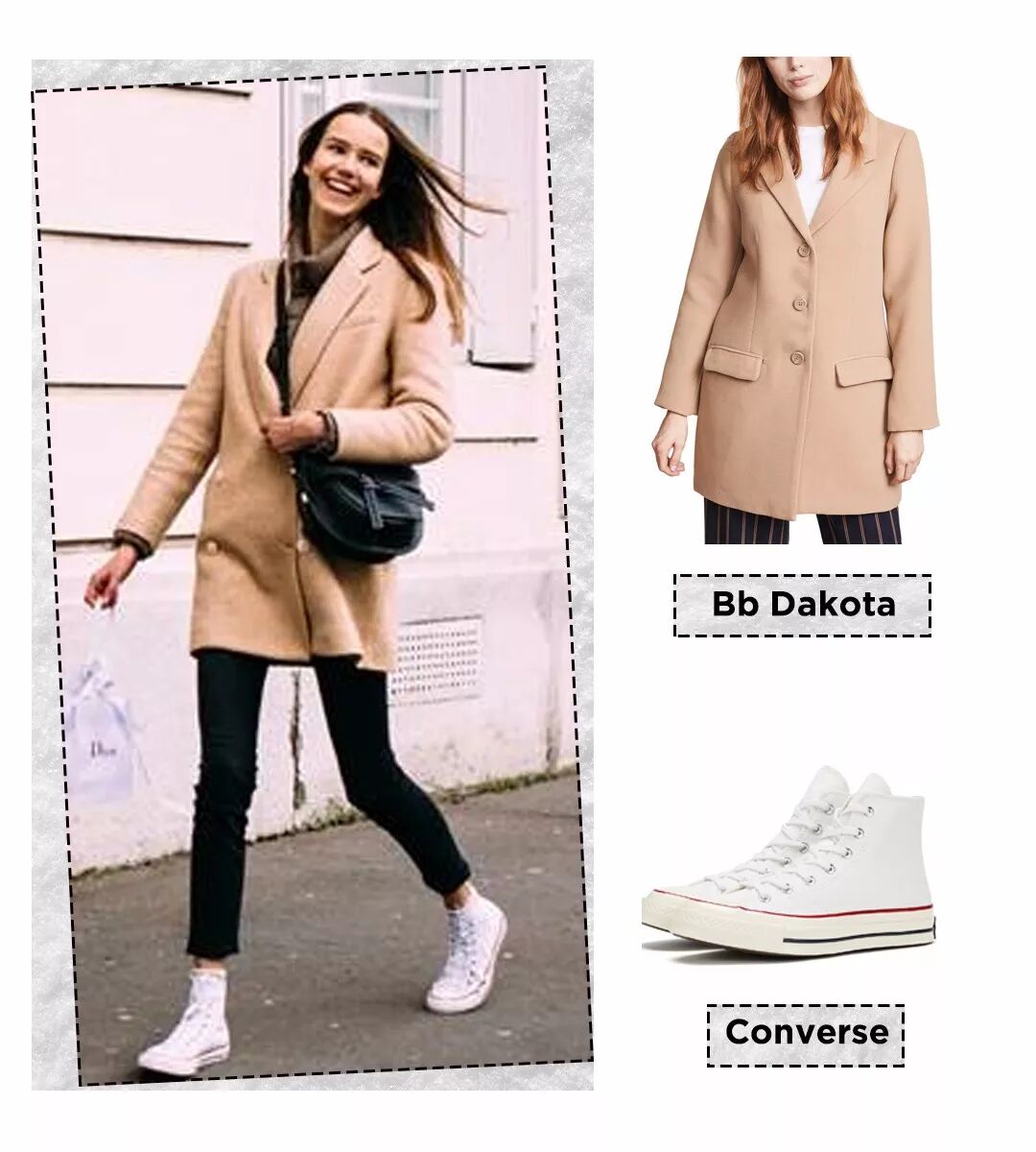 ▲小白鞋搭經典版型的大衣幾乎全包,根本不用教。所以這回就說說怎麼利用小白鞋把一件比較誇張有個性的大衣穿得出彩。