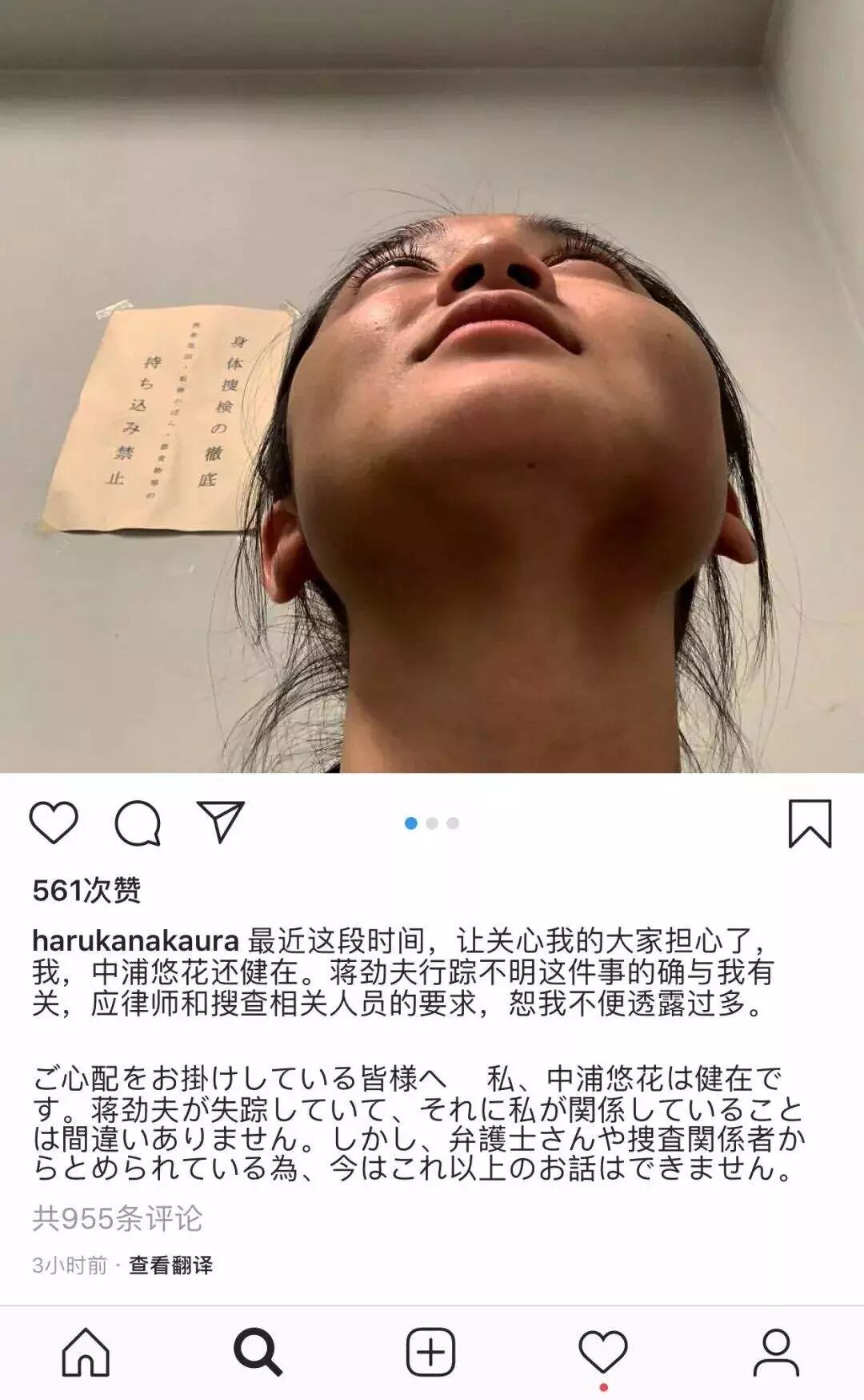 11月20號,蔣勁夫女友中浦悠花在Instagram上發文,控訴蔣勁夫的家暴行為 圖/網路