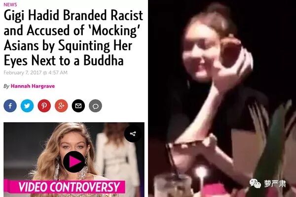 網紅模特Gigi Hadid就是因為惡意模仿瞇瞇眼被炮轟歧視亞裔的。