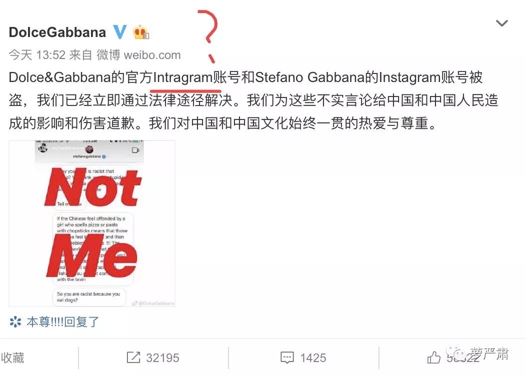 官微接著說,設計師和品牌官方ins都被盜了,請注意下面的第一個Instagram還拼錯了。