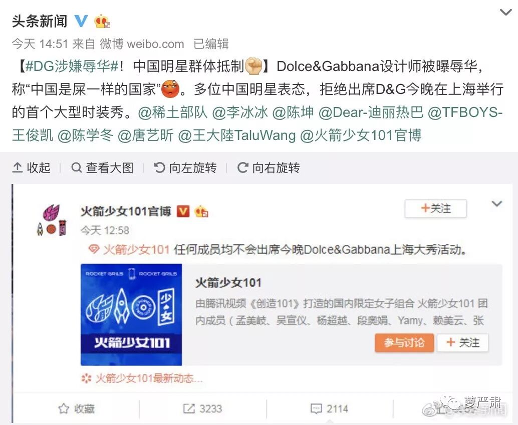 今天全網都被Dolce Gabbana杜嘉班納(以下簡稱DG)辱華事件刷屏了。
