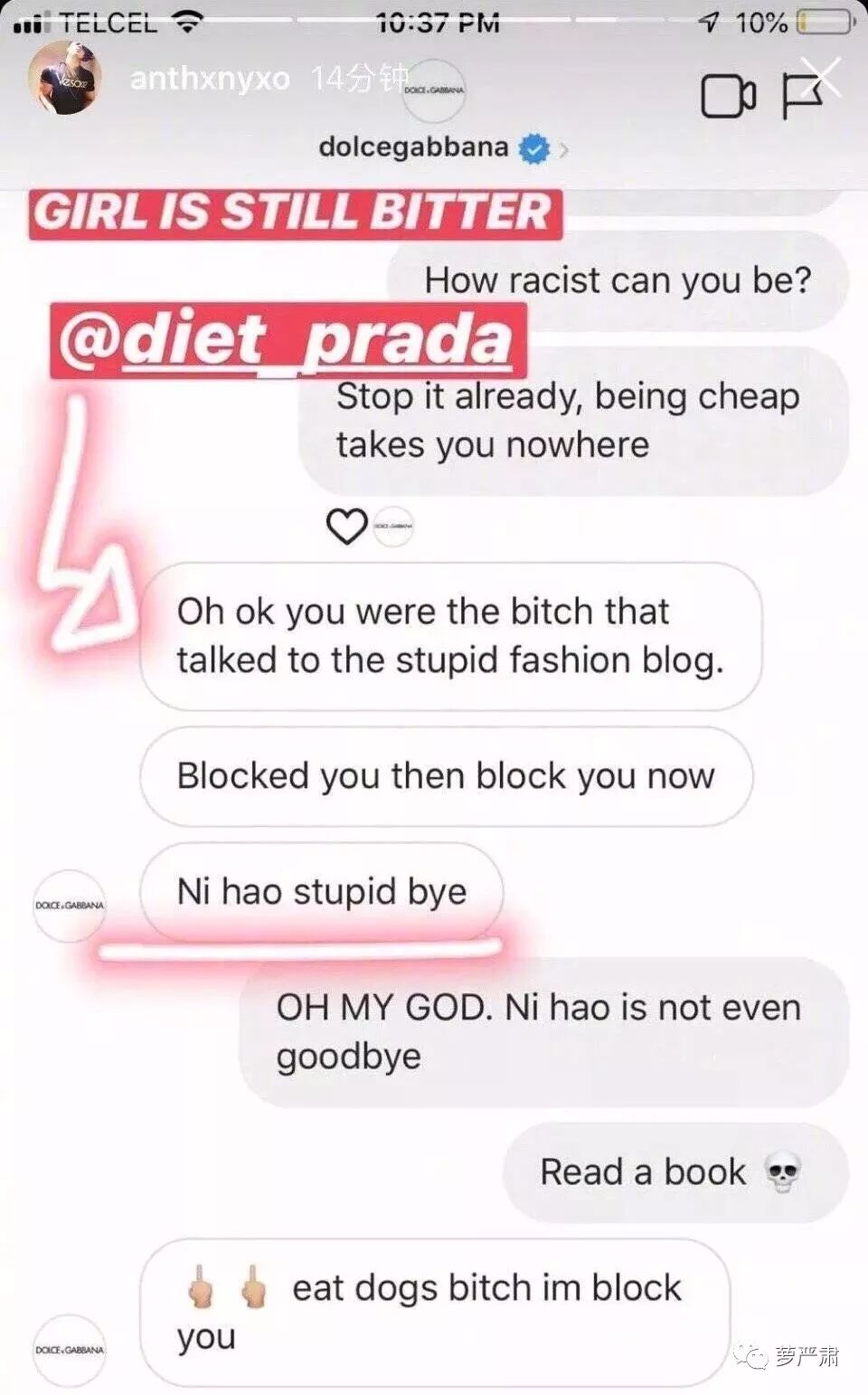 引發問題的關鍵是Instagram上一位網友@michaelatranova去私信創始人兼設計師Stefano Gabbana,提出品牌涉嫌種族歧視,幾番辯論後,Stefano Gabbana粗暴開罵。