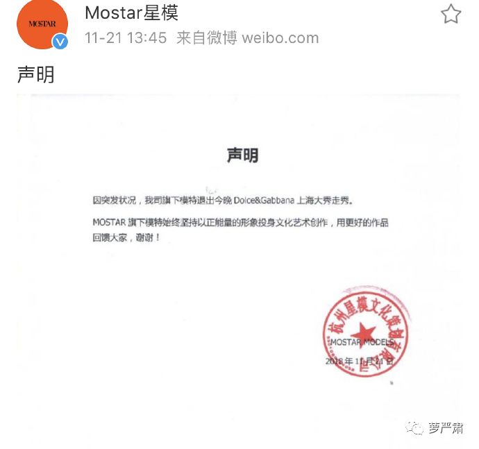 但如果DG僅僅出了這些這些宣傳素材的話,遠遠到不了中國模特藝人集體退出的程度。